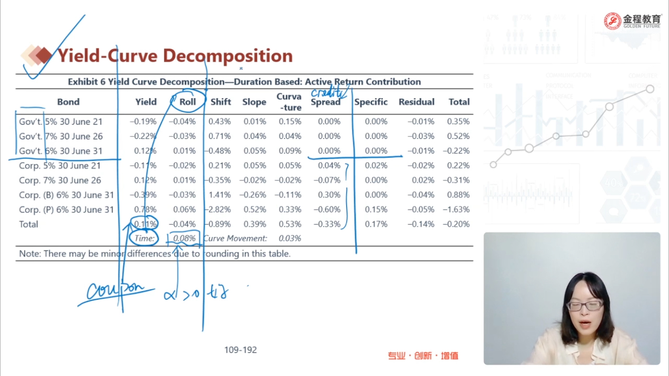表格中time:0.08%,怎么来的?为什么yield归为由于时间的变化而带来的超额收益