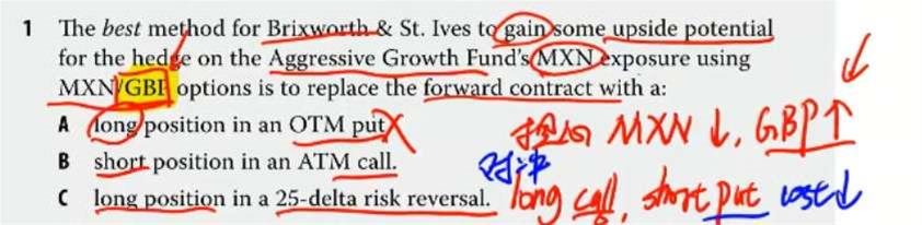 已解决老师您好,您上课讲risk reversal是long call+short put. 但是讲义205页讲的是long put+short call. 老师可以帮忙解释一下risk reversal到底是什么吗?