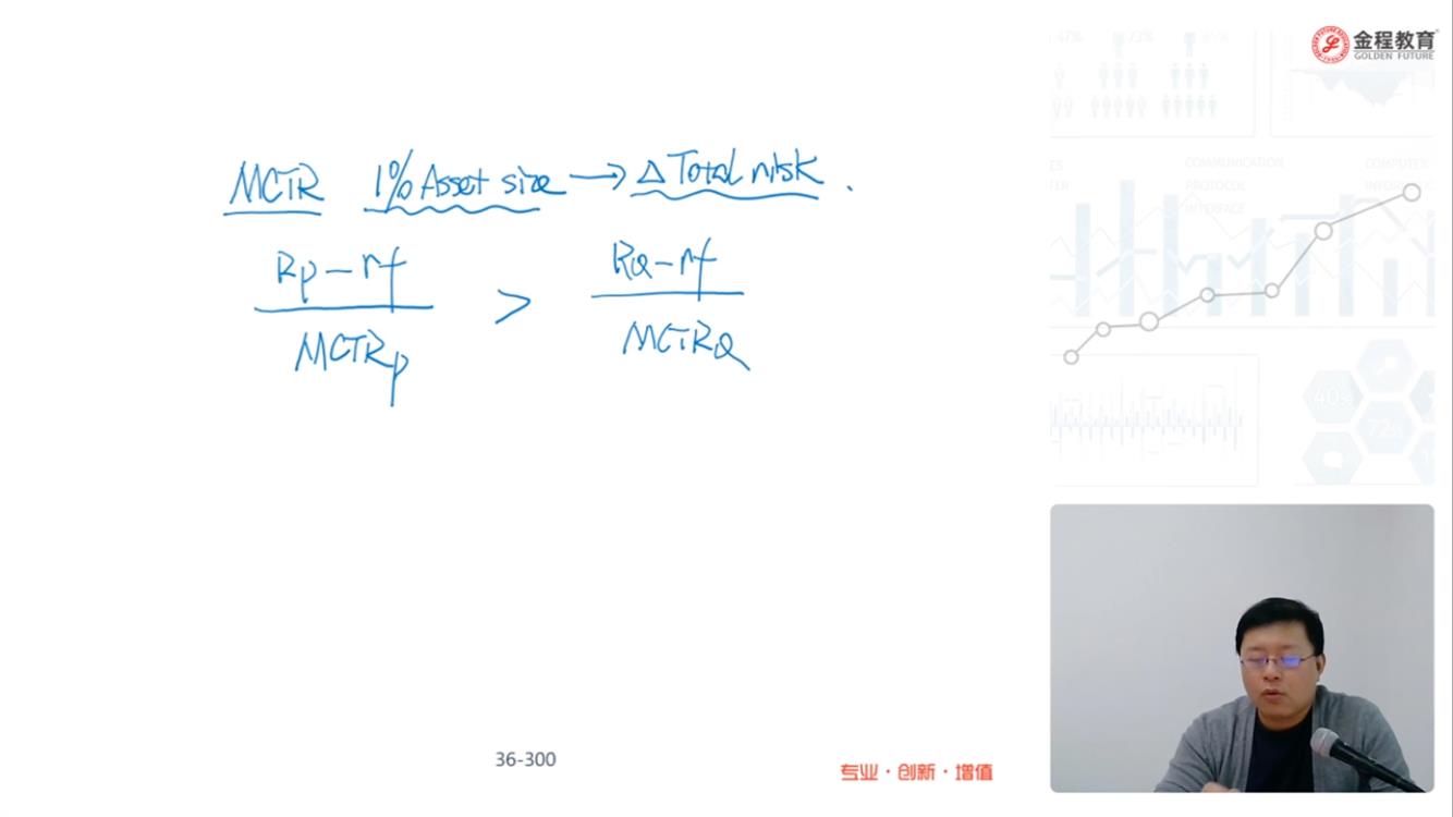 已解决Ratio of excess return to MCTR这个式子的含义是什么?分子是组合的超额收益,而分母是增加一单位某资产的权重所带来的总风险的增加量,如果是分子分母相除,不应该是增加的超额收益除以增加的总风险吗?分母用的是增加量而分子用的是绝对量,这好像逻辑不对吧?