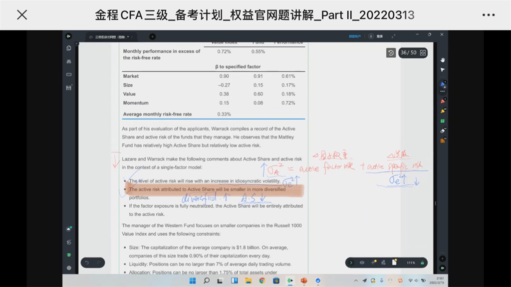 包含CFA三级传统在线课程相关提问答疑;