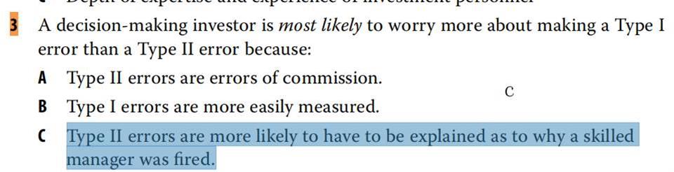 - 到底该怎么判断一类和二类错误?做的题目解答标准不一致啊,我看到另一道题的版本是 - 一类错误是做了错的事,二类是没做对的事。现在这一题,对于不合格的经理不采取行动,不就是二类错误 - 没做对的事吗?