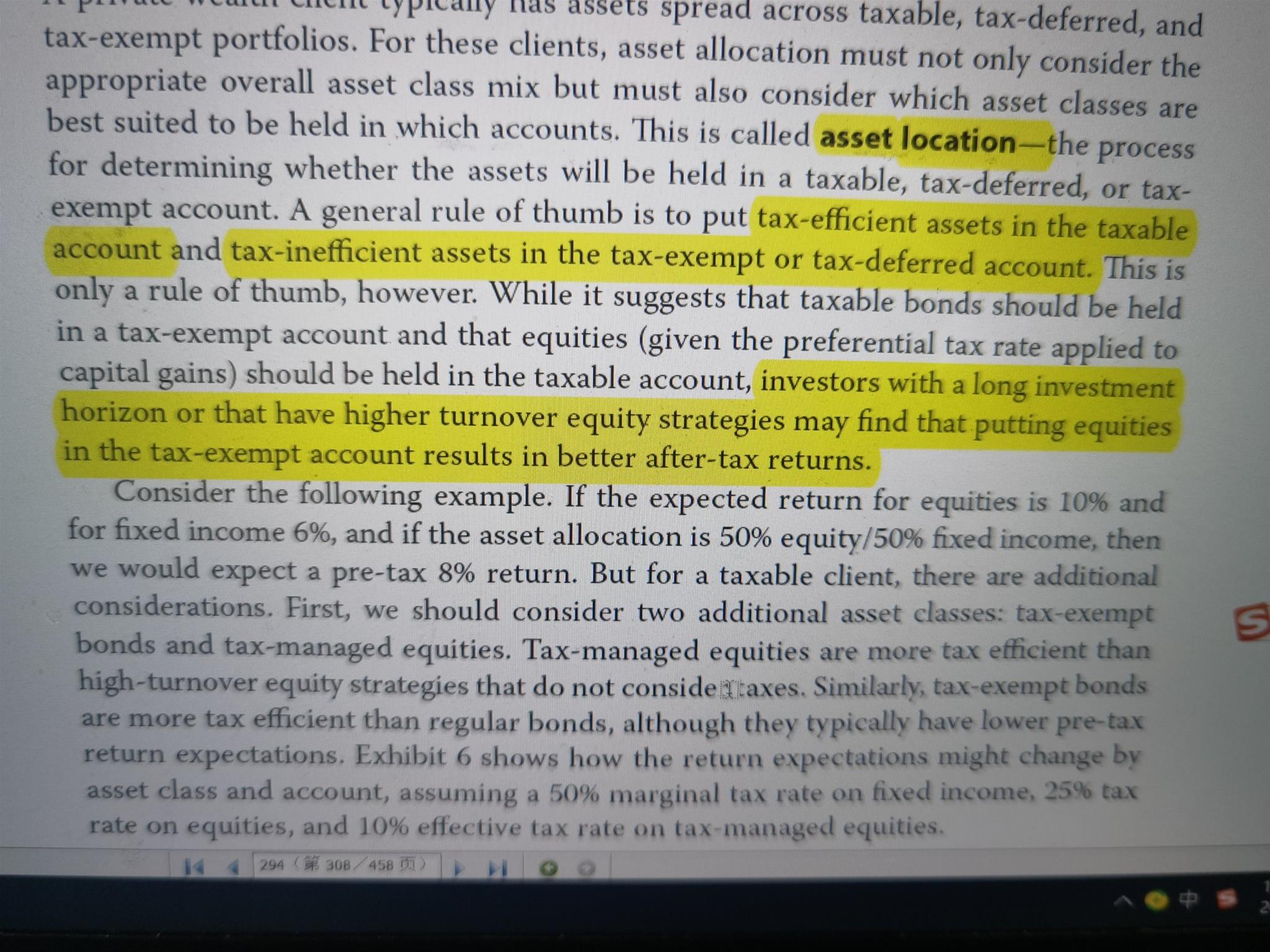 标黄的最后一段话:投资期限长,有更高turnover的权益策略里,把equity放在TEA里有更好的税后收益?怎么理解?