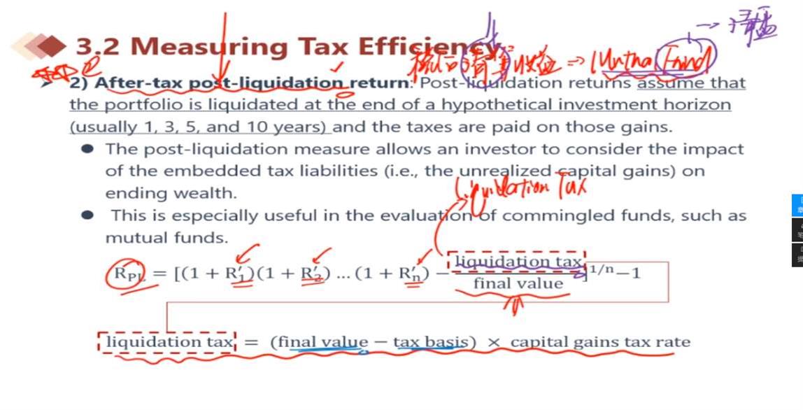 关于这里老师上课提到embedded-capital-gain等于final-value减去tax-basis,我有些不太懂这个embedded-CG.请问下老师,这个值是包含realizedCG和unrealizedCG吗,我的理解是只有unrealized部分,因为realized部分已经在前面的compounded税率的计算中包含进去了,求解释!