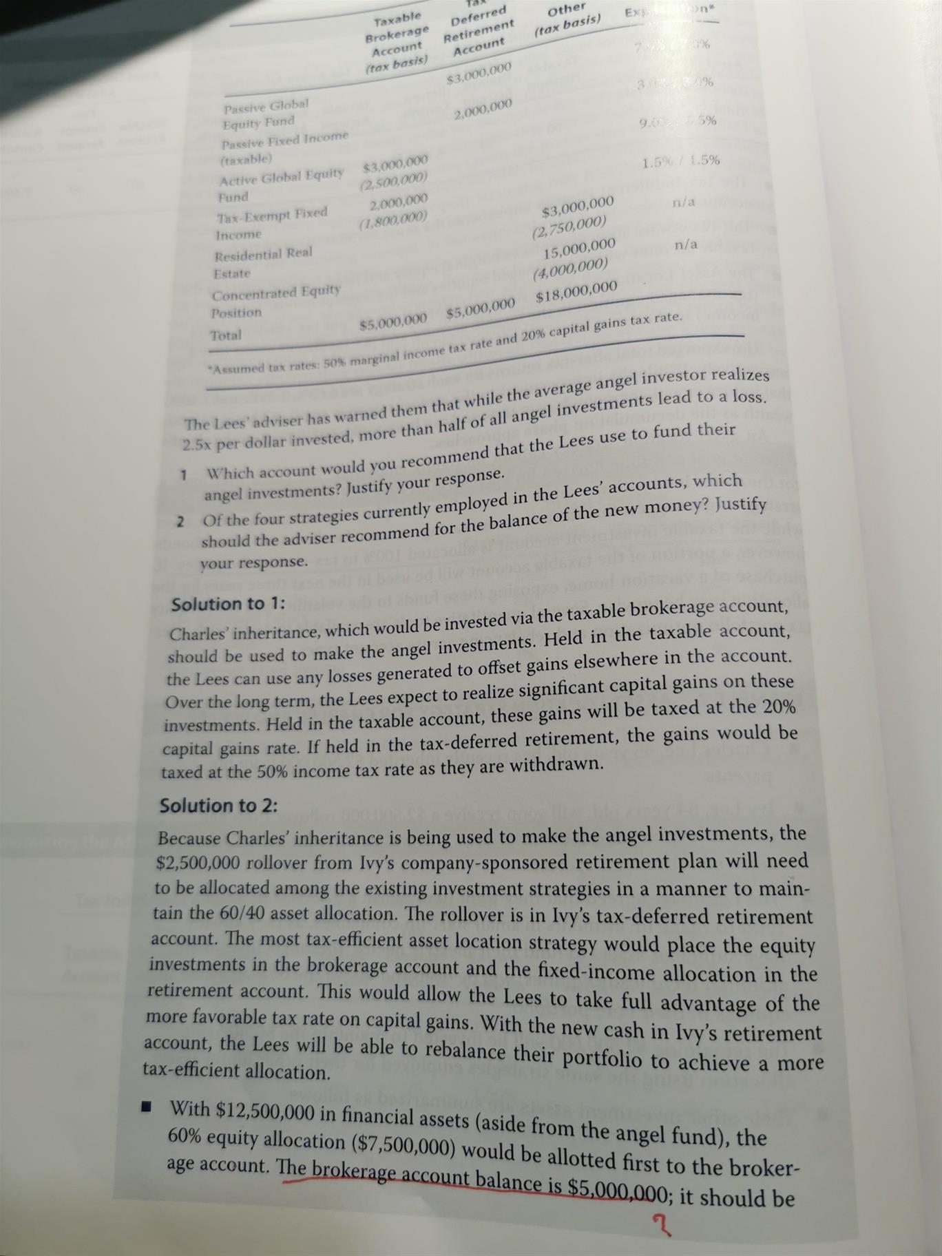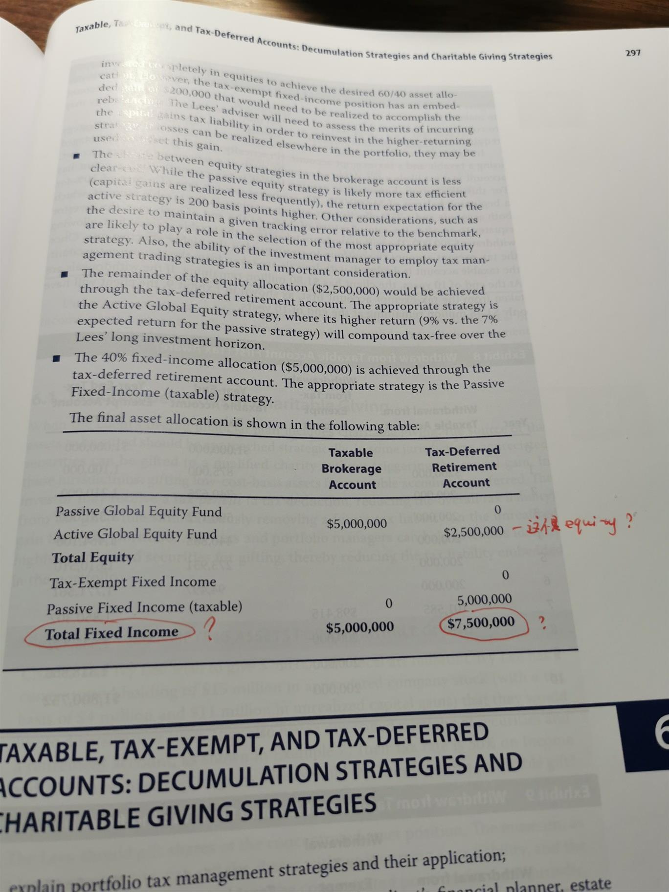 R22例题7:n1. 为什么brokerage account balance只能最多到500万?哪里写了?nn2. 为什么最后图表写total fixed income是500W和750W,里头不含了equity吗?n