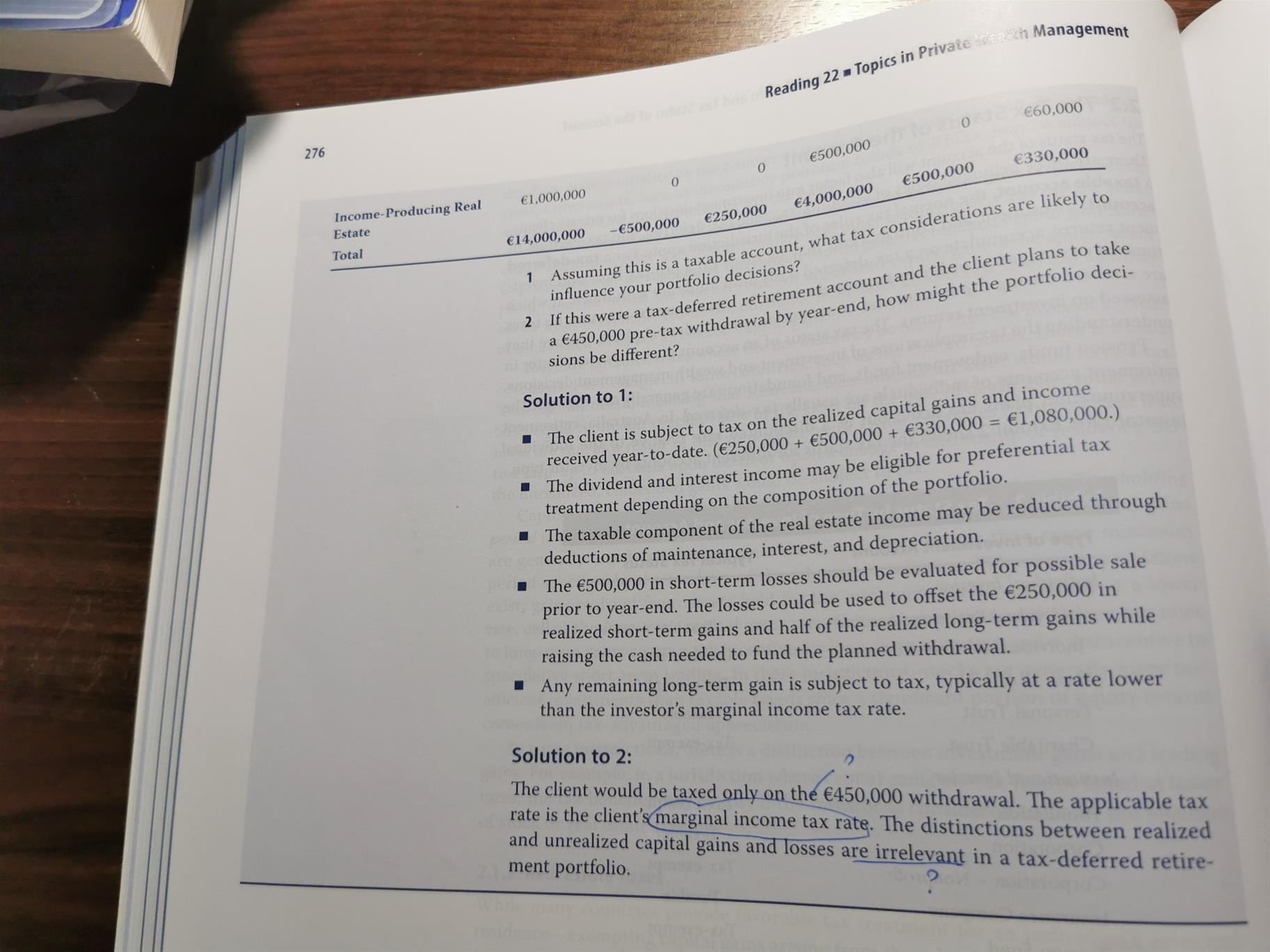 老师,R22例题1第二问答案看不懂,为什么用income tax rate去计算,而不考虑capital gain tax呢?以及为什么在TDA里realized/unrealized G/L是不相关的呢