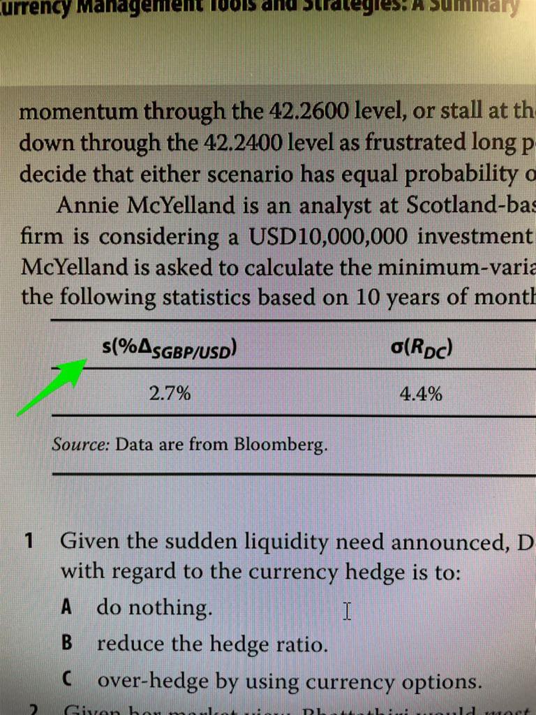 请问R10原版书例题10第1题,为什么在流动性需求提高时,外汇对冲要do nothing啊?