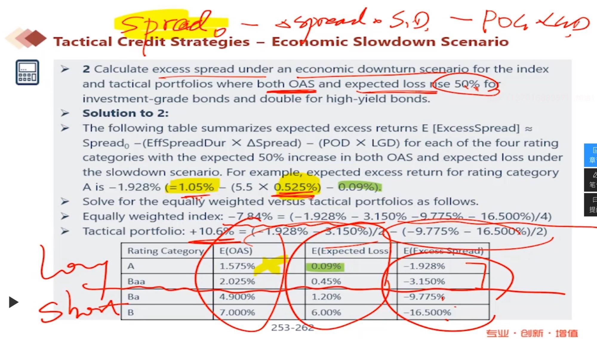 请问老师这道例题中第二问在OASrise50%后,Ba和B的Current OAS和Expected Loss是如何计算的?我的理解是Ba债券2.45*1.5=3.675%(而非4.9%),EL:0.6%*1.5=0.9%(而非1.2%)B债券也是,谢谢