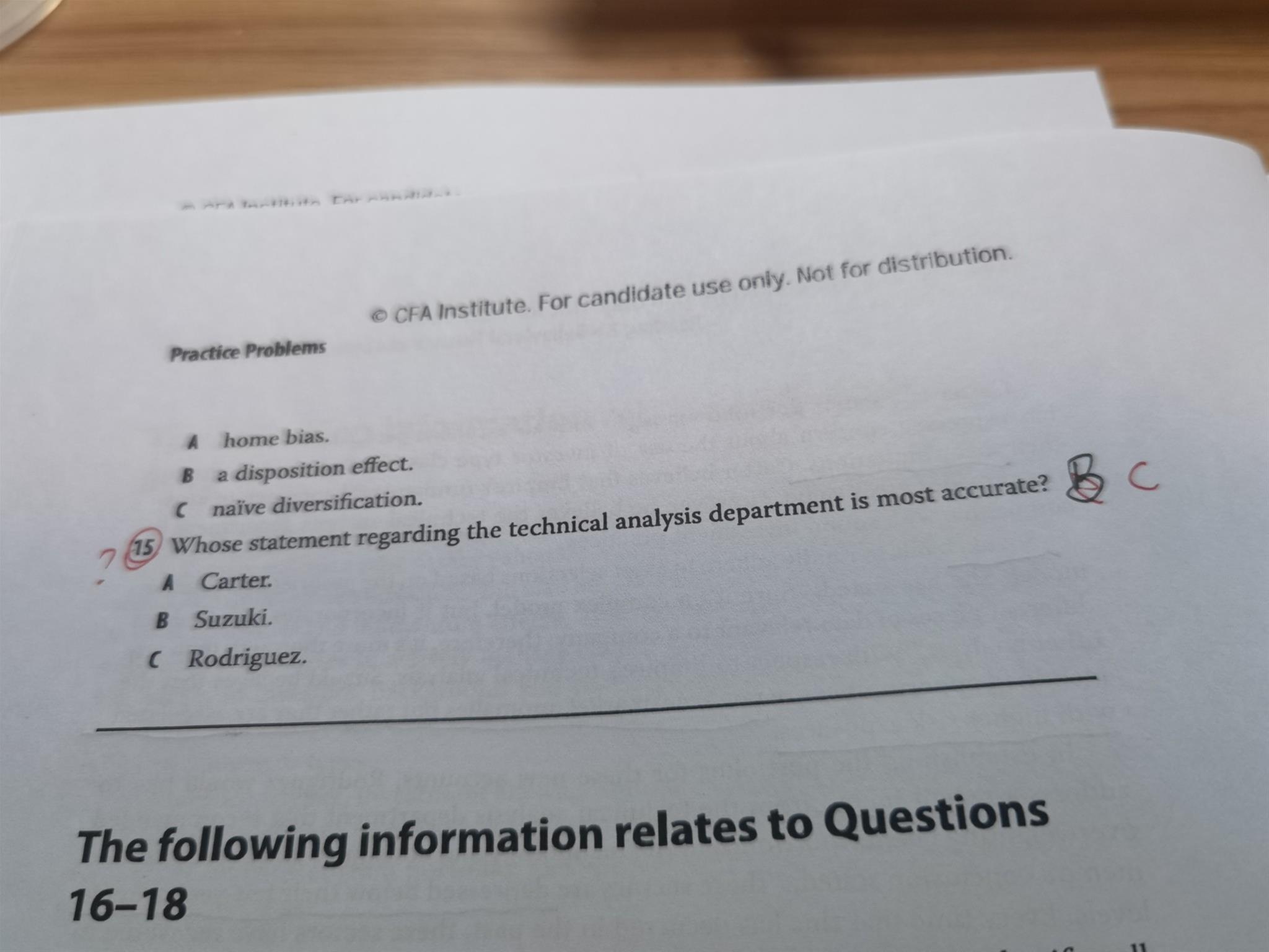 15题考点到底是什么?A选项是因为技术分析不是有力的投资工具所以错?B和C怎么理解?考点内容在原版书里有涉及吗?