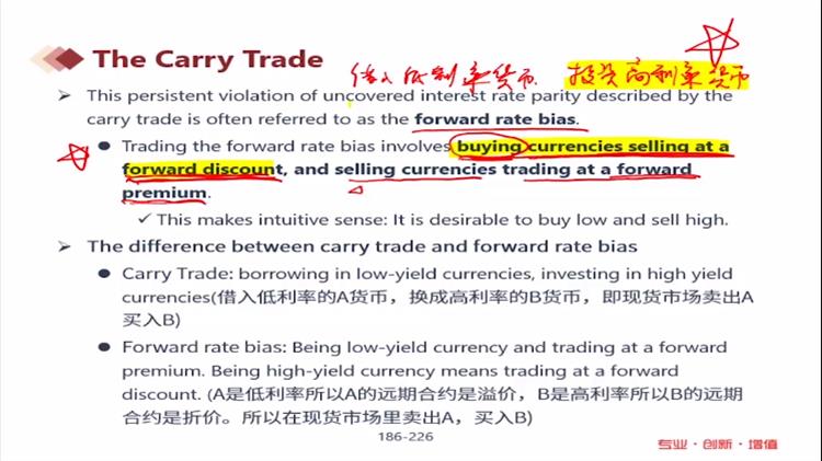 书上的结论:低利率货币是远期溢价,应在即期卖出。 一、利率角度。借低利率货币,在即期卖出,在远期买入。这个角度我能理解。 二、汇率角度。远期溢价的货币,说明货币在升值通道上,应即期买入,远期卖出。这个角度得出相反的结论,是哪里错了啊?