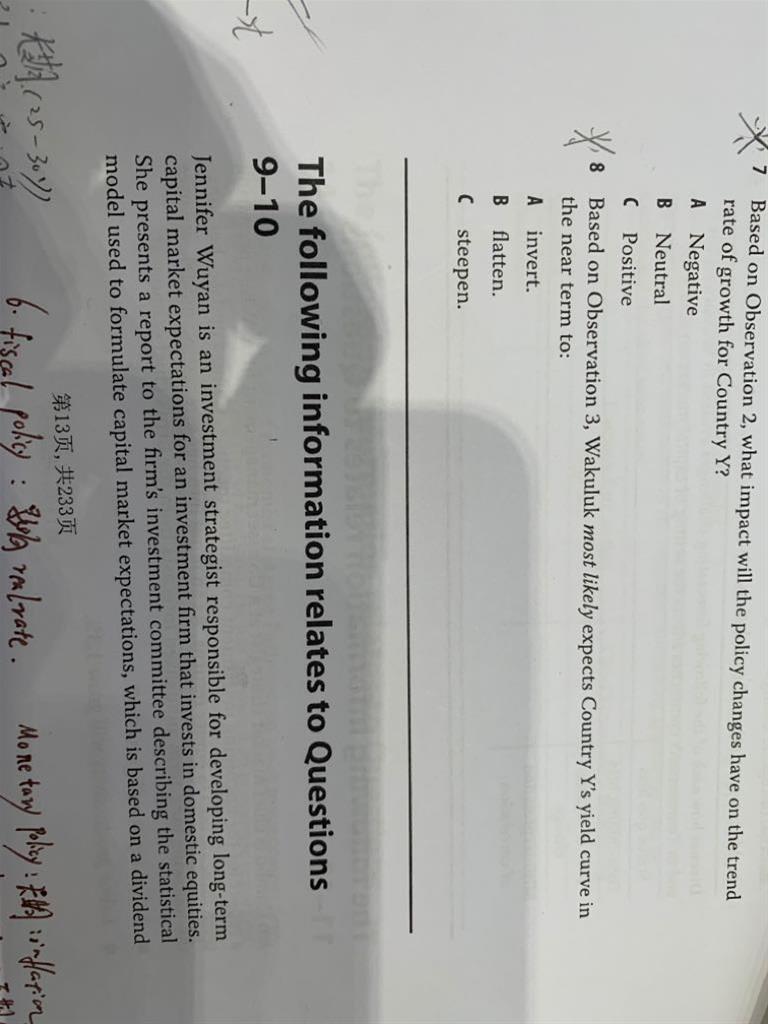 已回答Q14: “investment manager who pursues the cash-based yield curve strategies described in Exhibit 5 faces an inverted yield curve (with a decline in long-term yields-to-maturity and a sharp increase in short-term yields-to-maturity) instead. Which of the following is the least likely portfolio outcome under this scenario?” 这是书中R13例子4。请问为什么Buy and hold是gain? 所以Buy and hold 不是适用于upward sloping吗?谢谢