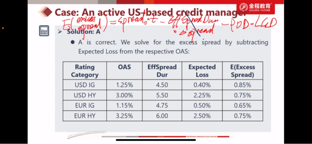 课件213页第3问在求excess return ,对于公式中的第一项spread 和第三项POD*LGD均乘以了t,而在讲课后题是老师讲的题目和公式,仅第一项spread 乘以了t,第三项没有乘t,在考试做题时,这个公式到底以什么为准,第一项和第三项到底乘不乘t