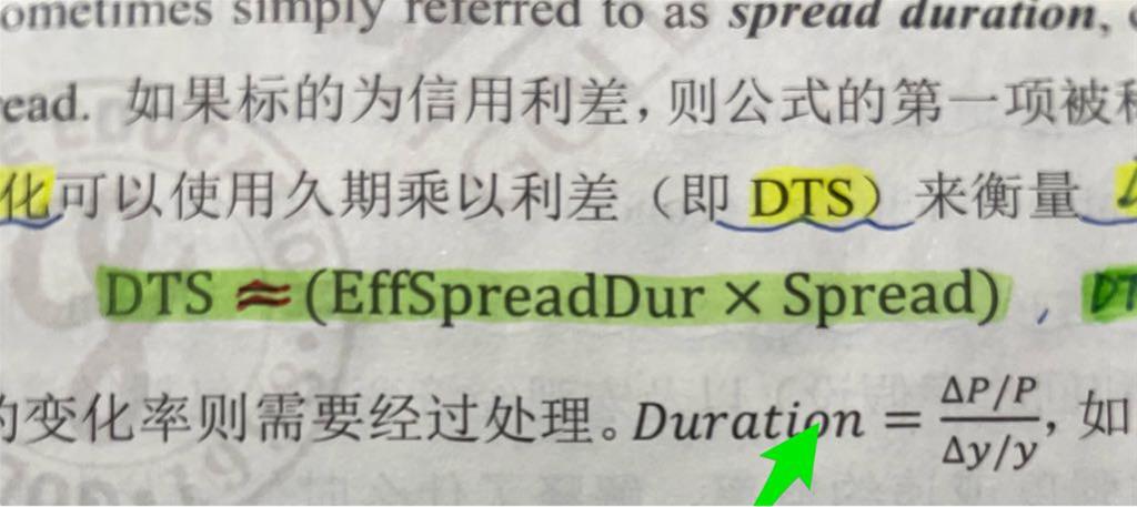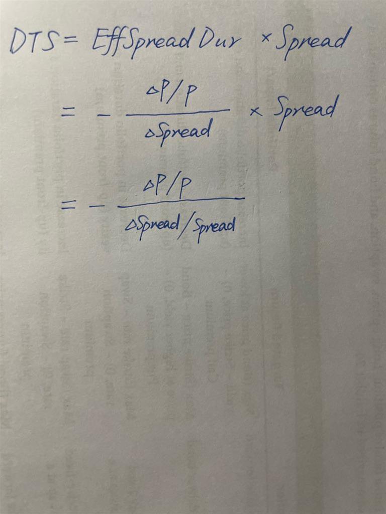 已回答请问Druation times spread (DTS)是个什么概念?在图中推导了一下,感觉不太明白为什么要有DTS这个概念?R14原版书例题11计算的组合DTS是750bp,如果考试中,是写成0.075吗?