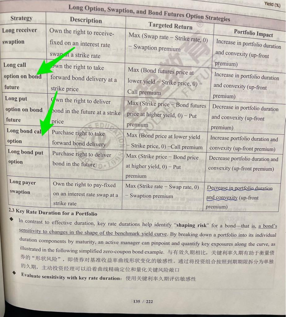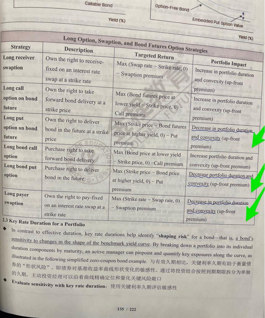 请问以下总结对不对:1.预期利率上涨,要买callable bond和putable bond?2.预期利率下降,要买option-free bond?