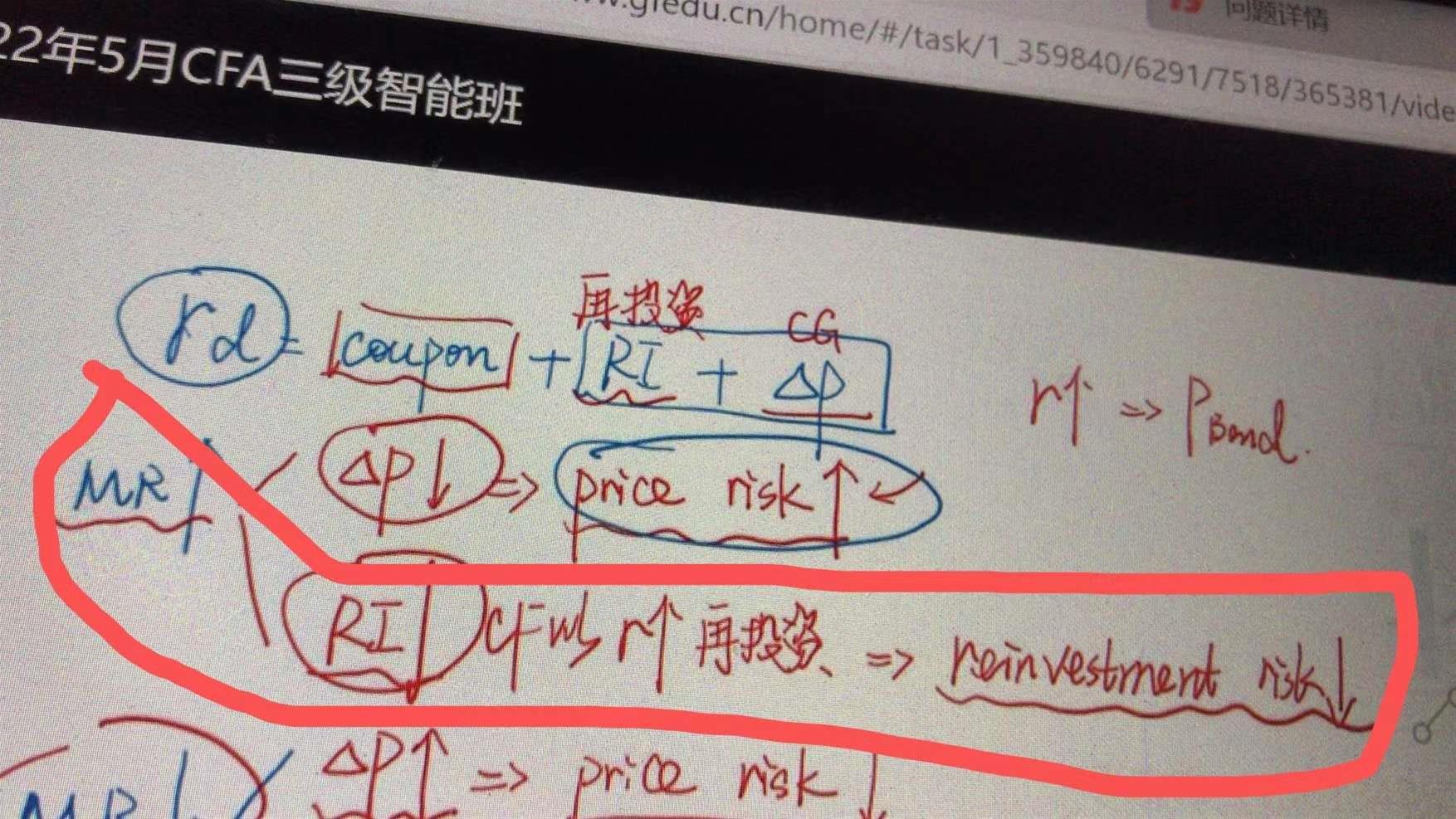 如果DG小于零,reinventment risk占主导地位,但MR却在上升,这时难道reinvestment risk不是在减小吗?因为以更高的市场利率在投资了呀