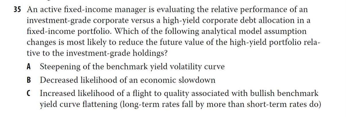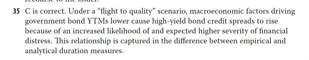 固收课后题35题,题目和答案都看得懂,但是这个解释跟题目问的问题,没法链接起来。请老师解答一下。