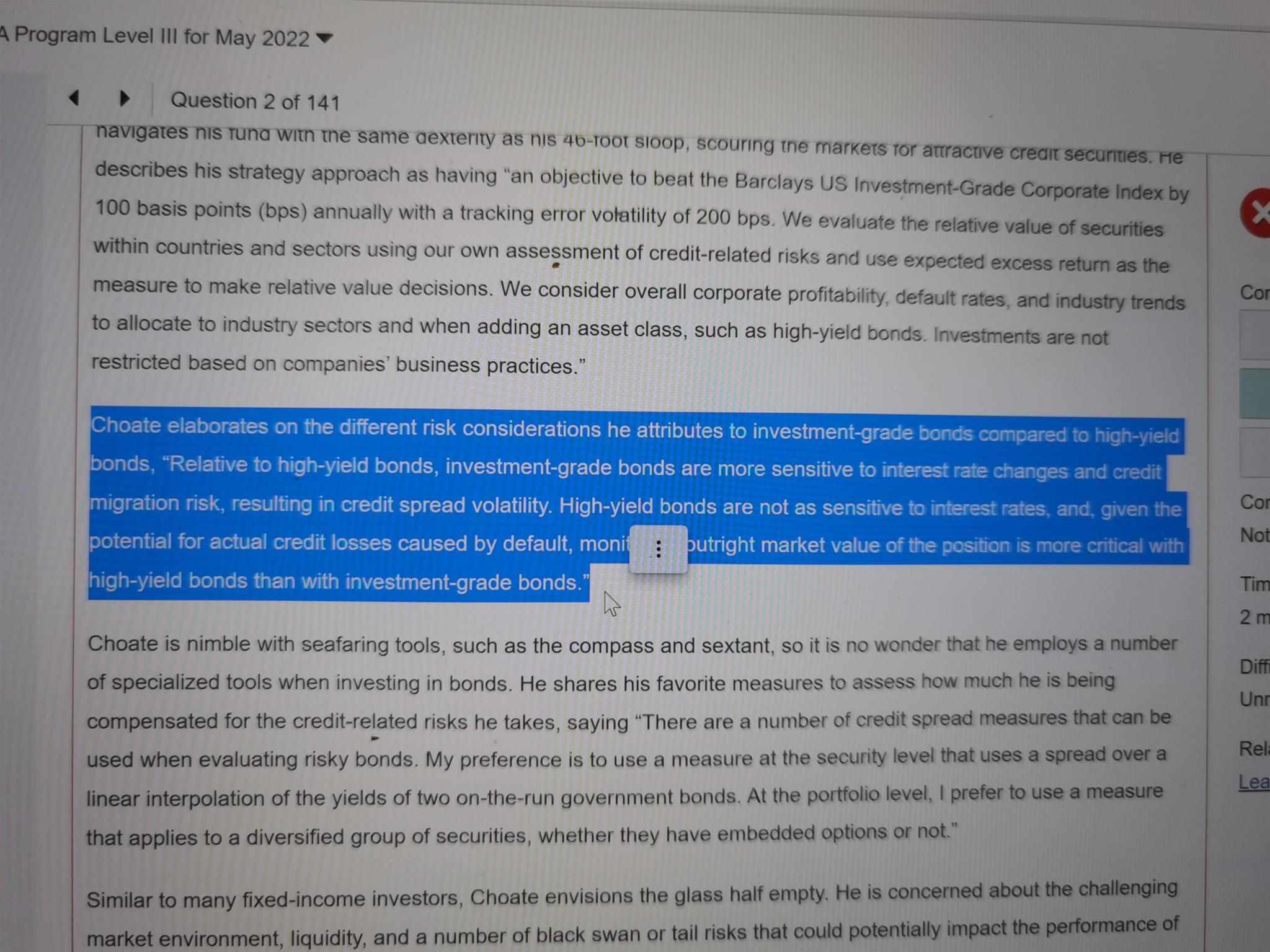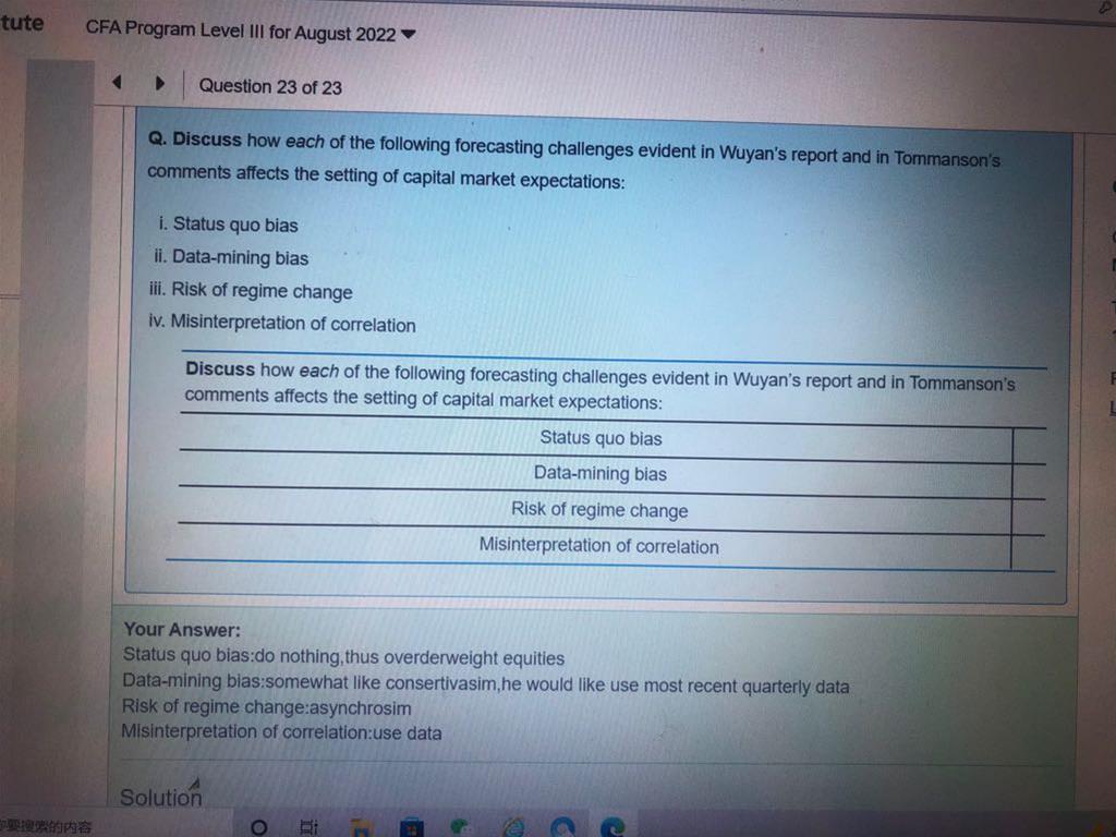 包含CFA三级传统在线课程相关提问答疑;