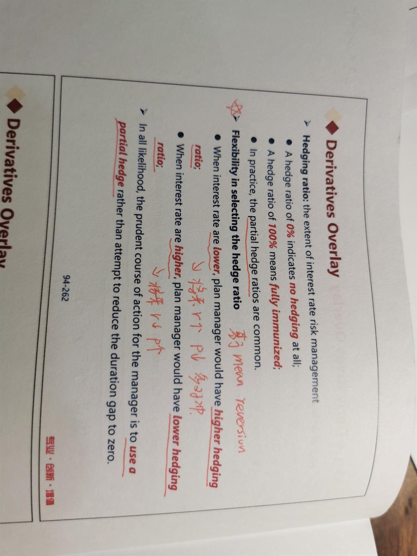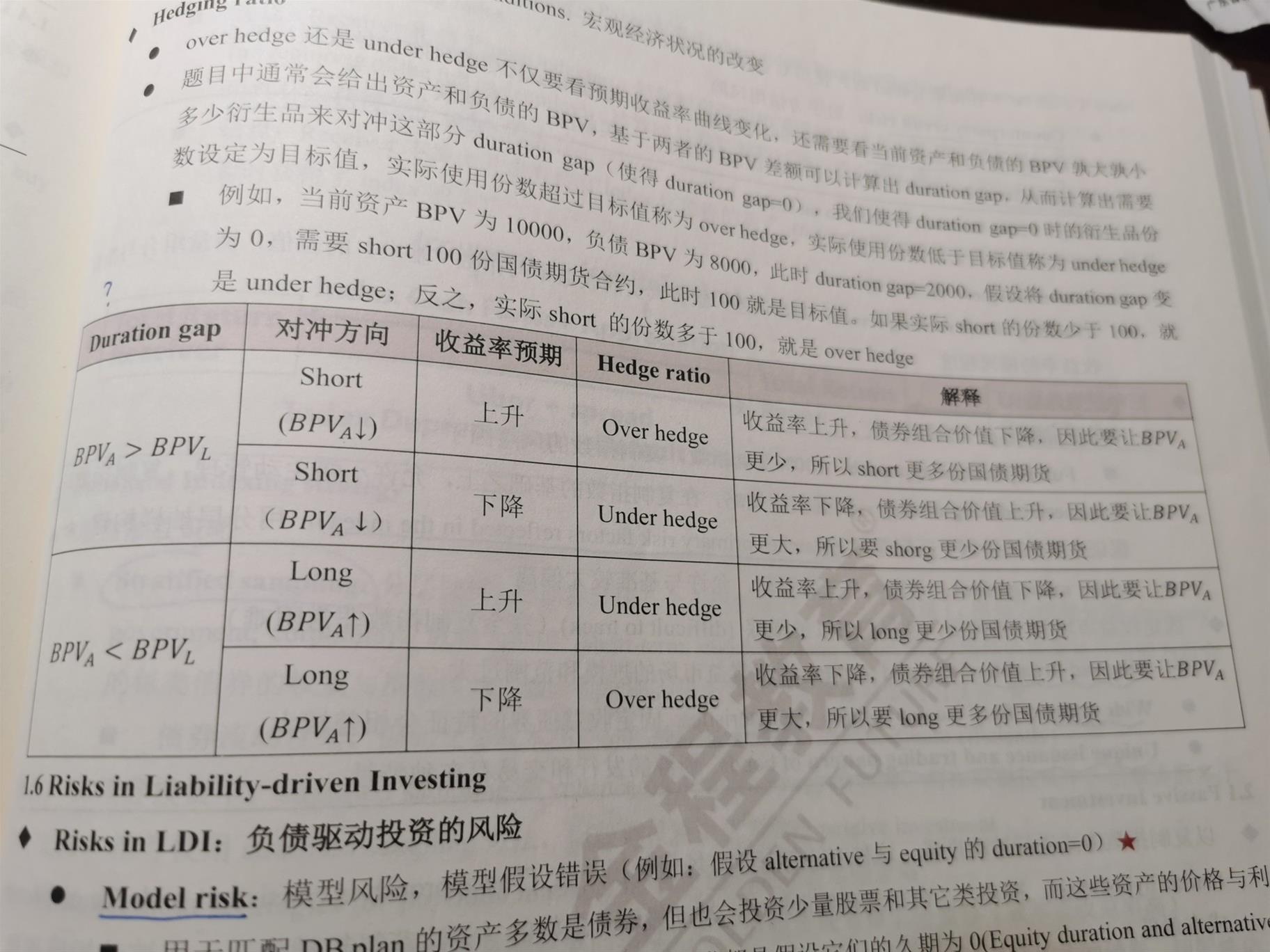 图二:老师在固收原版书例题直播讲解说利率下降时,债券价格上升应该underhedge n图三:***老师在基础班讲解说利率下降时,基于均值回归未来利率会上升,价格未来会下降,所以要少对冲nn这两个完全相反的解答,到底该怎么理解呢?好困惑。nn此外,图一还分了资产和负债的BPV大于小于的情况不同时的判断,但这个看不懂,可以再具体解释下吗?
