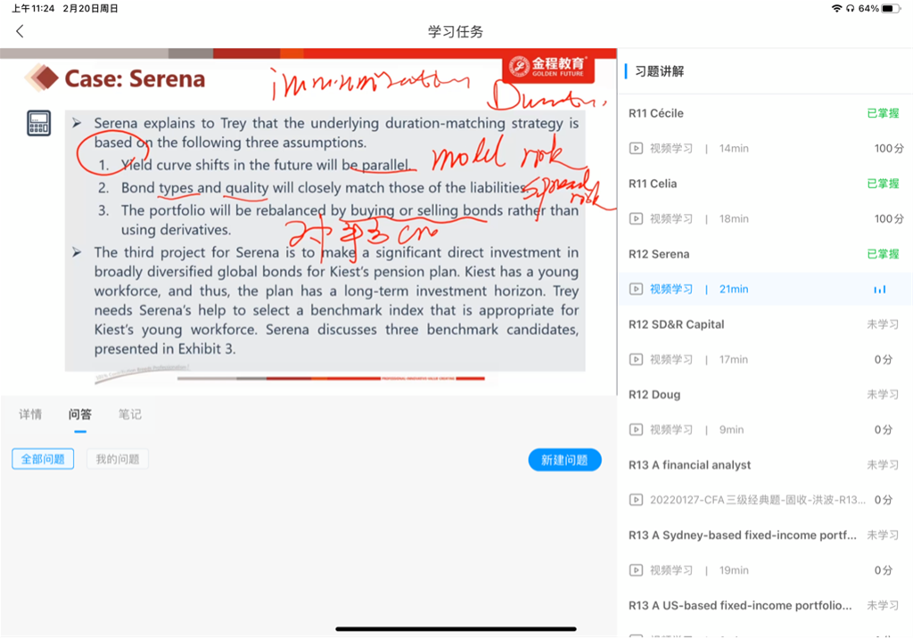 包含CFA三级传统在线课程相关提问答疑;