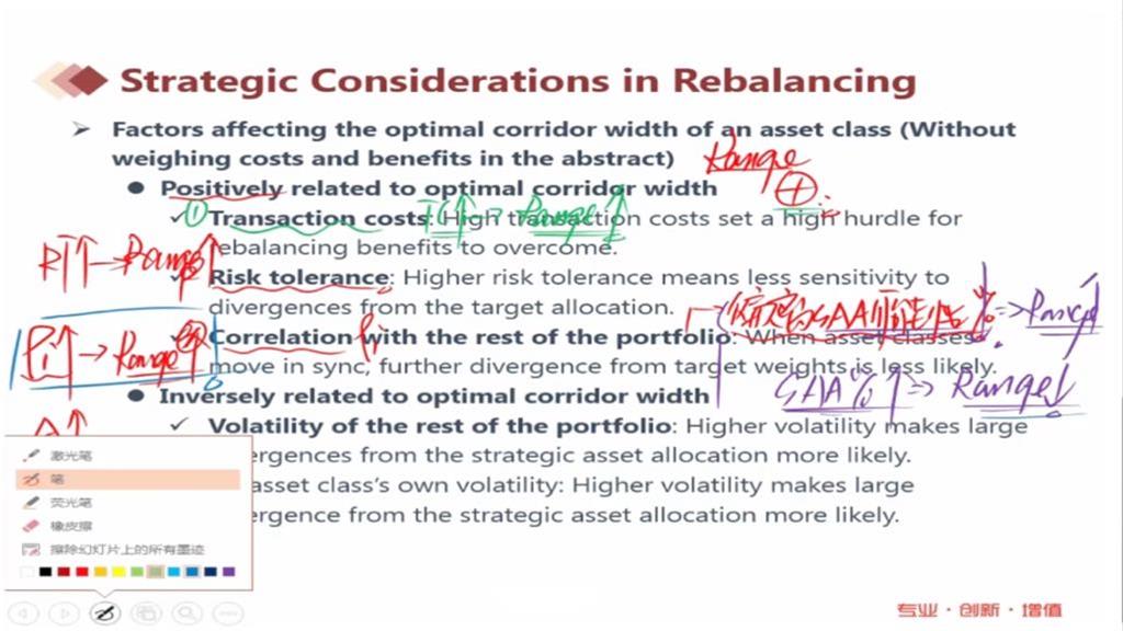 其实我一直对asset class correlation有疑问,如果说资产间相关性低,容易偏离,那么我设置narrower range,这个逻辑okay。但是当资产间相关性高,即使资产涨跌都不怎么影响各资产权重,那么严格上讲,这个range大或者小,对我来说都是neutral的。当ρ变大,应该不是range变大的充分条件吧?