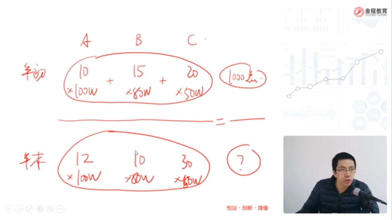 已解决老师,问个基础问题,指数构建中,我们有市值加权,有价格加权,以市值加权为例,也就是说我们在构建指数时以每只股票的市值占总市值的比例为权重来计算指数,那计算的是以市值为权重的价格?比如,老师上课举的这个例子,年初的总市值为3200,A. B. C各自的权重分别为1000/3200,1200/3200, 1000/3200,然后用各自的权重乘以各自的价格吗?这样得出的不是一个加权平均的股价吗?那怎么变成指数的点数了呢?