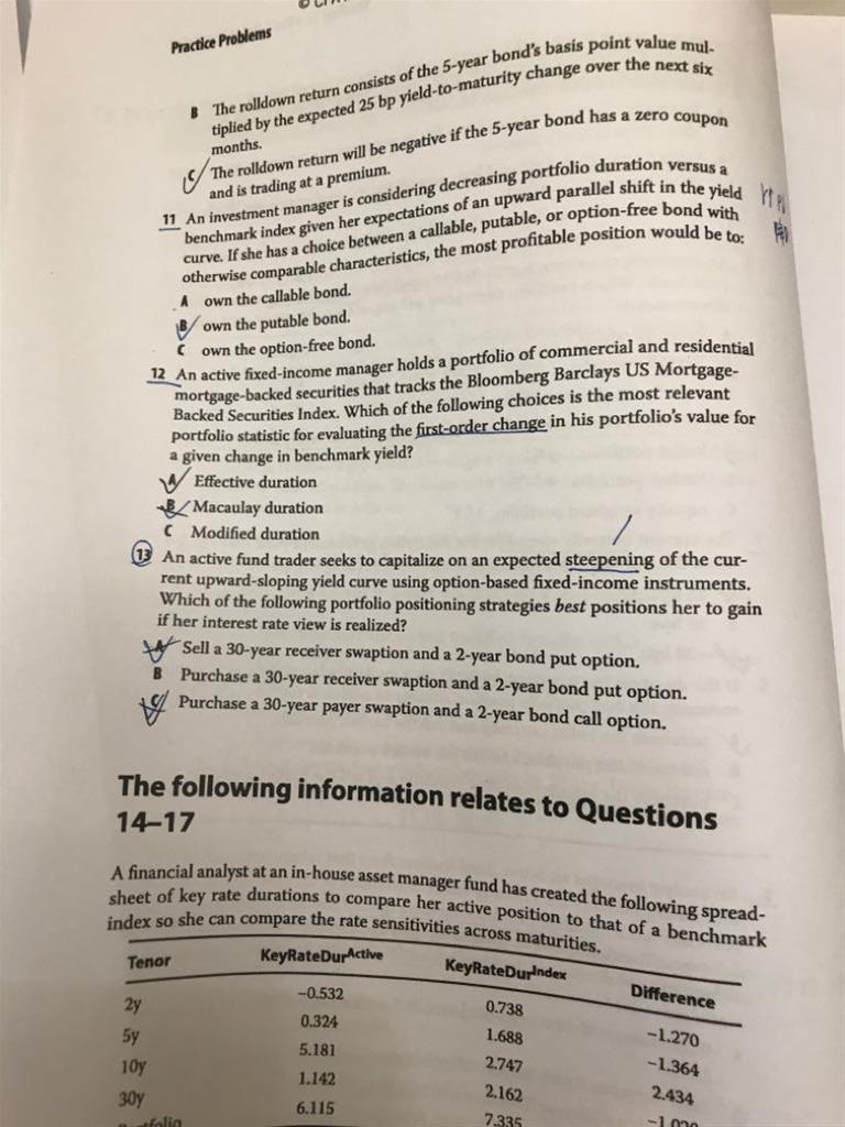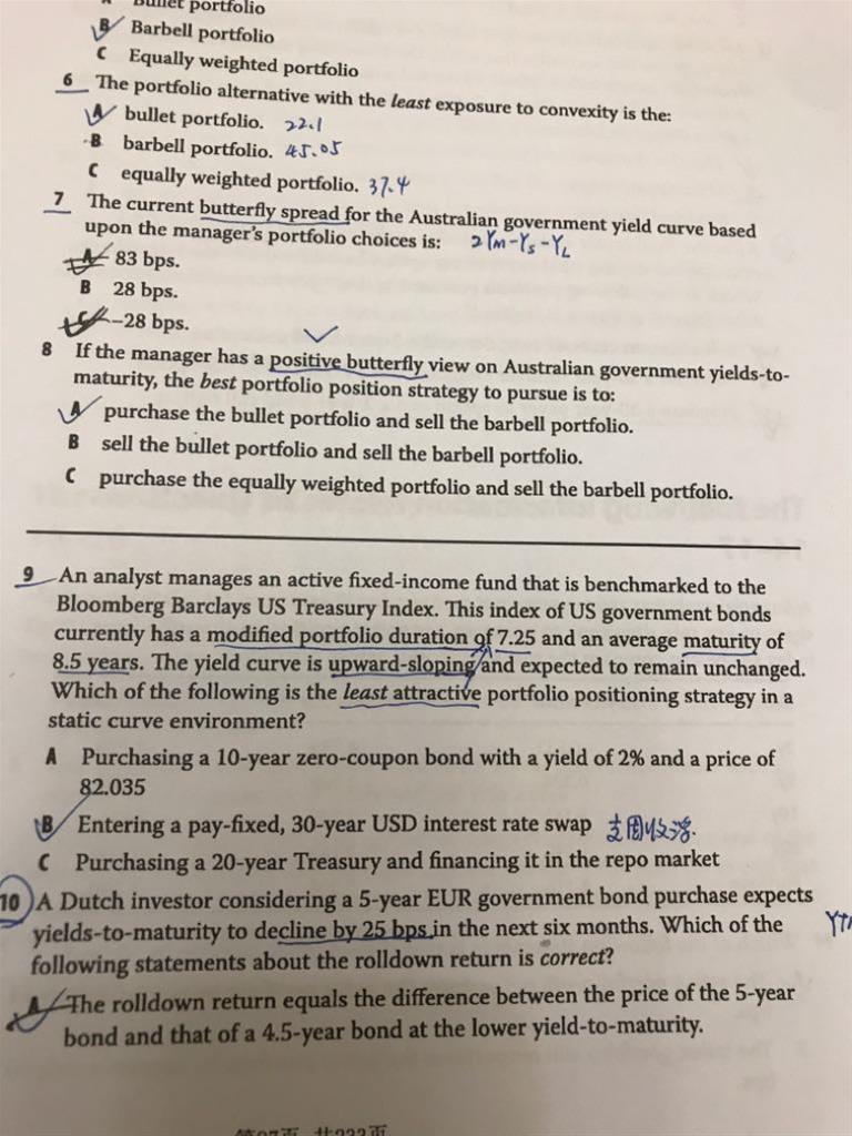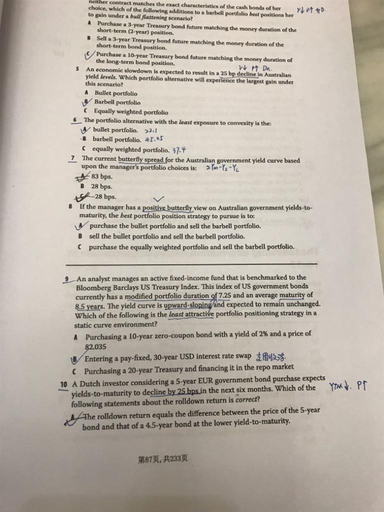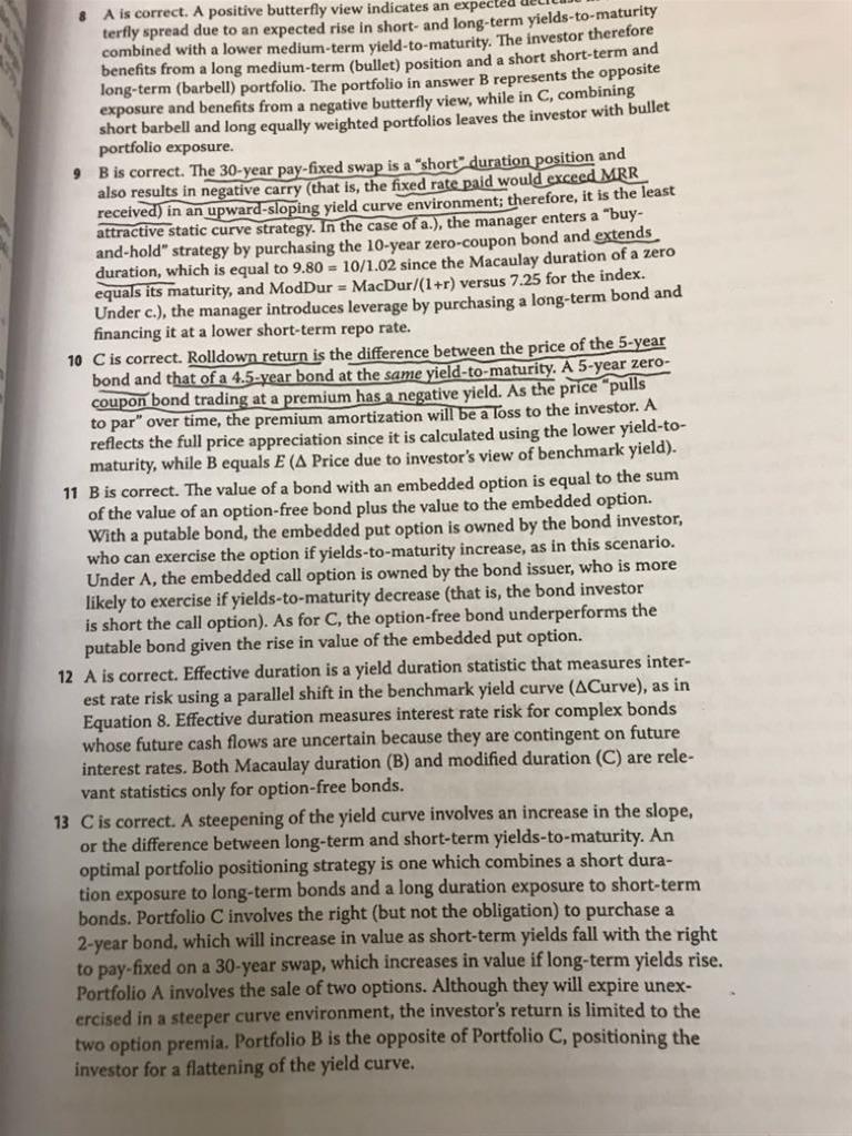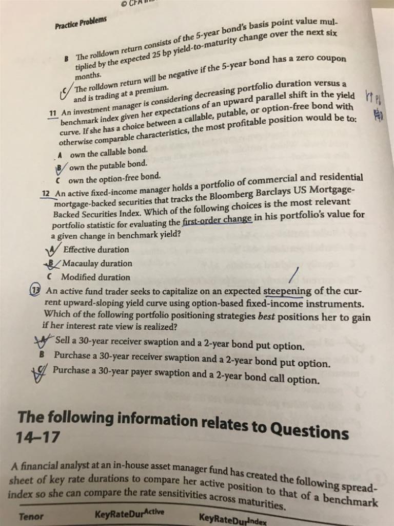 9题yield curve上升趋势且稳定时,B选项Duration 降低有影响呢?利率又没有升降。答案中为什么说yield curve上升趋势时支固定会比浮动利息多?A选项点是增加了duration 吧?那有有什么影响呢?