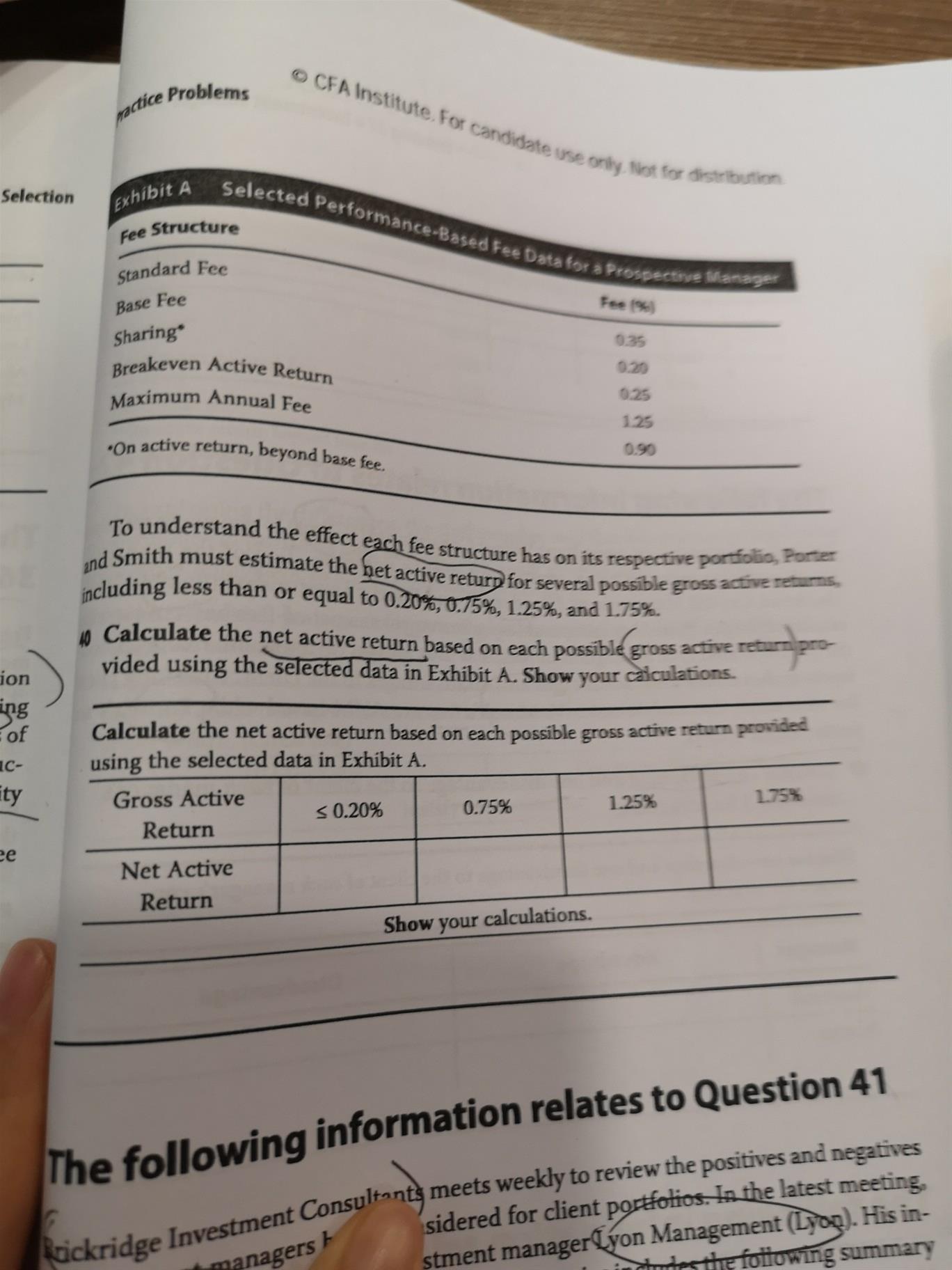 课后题185页41题为什么1.25是breakeven active return,就没有sharing fee,而0.75都还没有达到breakeven active return,就有sharing fee