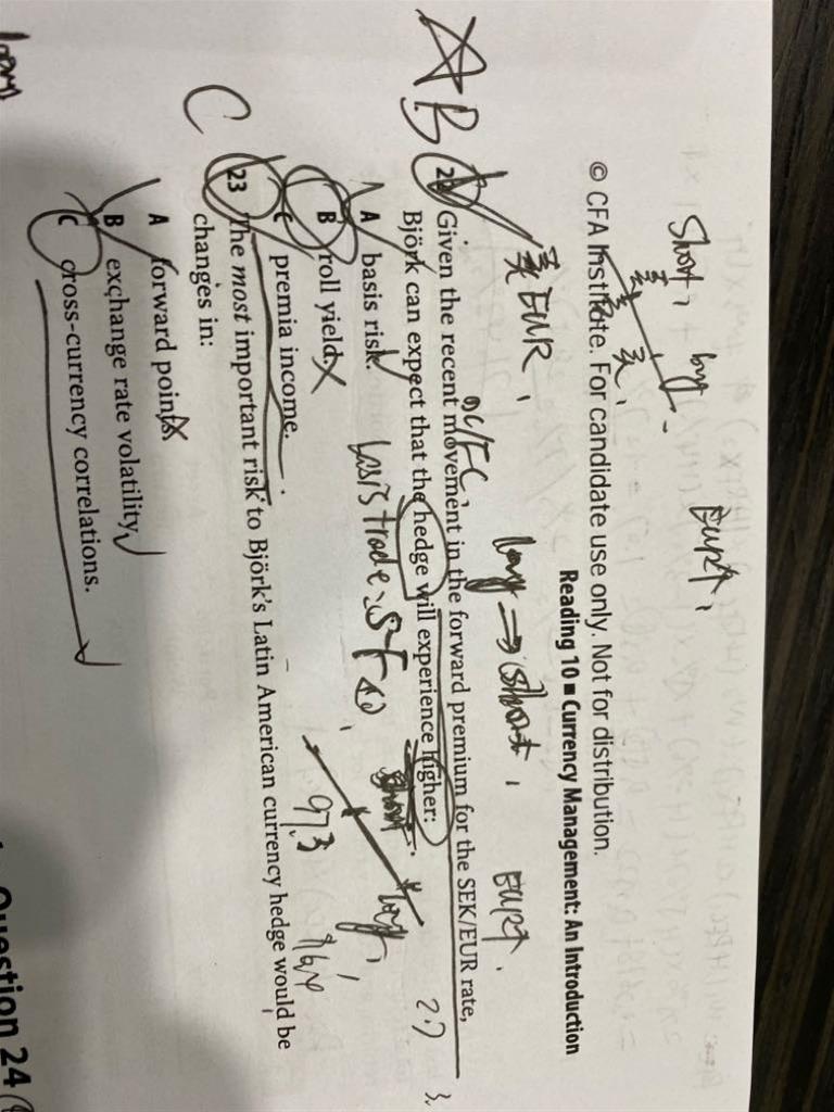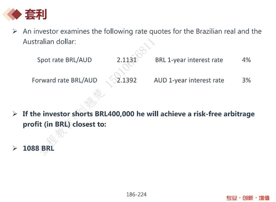 R10,讲义P186,该例题中为什么shortBRL?我理解spot rate BRL/AUD 2.1131,Forward 是2.1392,表示AUD远期升值,有Forward premiun,根据后面表格中总结,应short forward premium:AUD