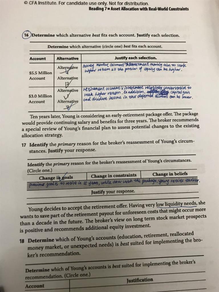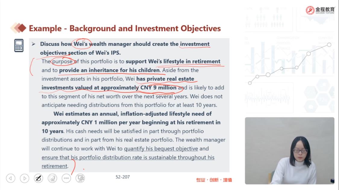 老师,想问一下这个例题的答案,老师讲wei打算投资房地产价值900万,预期未来十年不会带来收益。两个问题:一是原文表述个体持仓是stock和房地产combined900万,为什么说是房地产900万,而且应该不是打算投资而是已经投资吧。二是原文是不是应该理解为未来十年不需要追加投资,而不是没有收益吧,谢谢