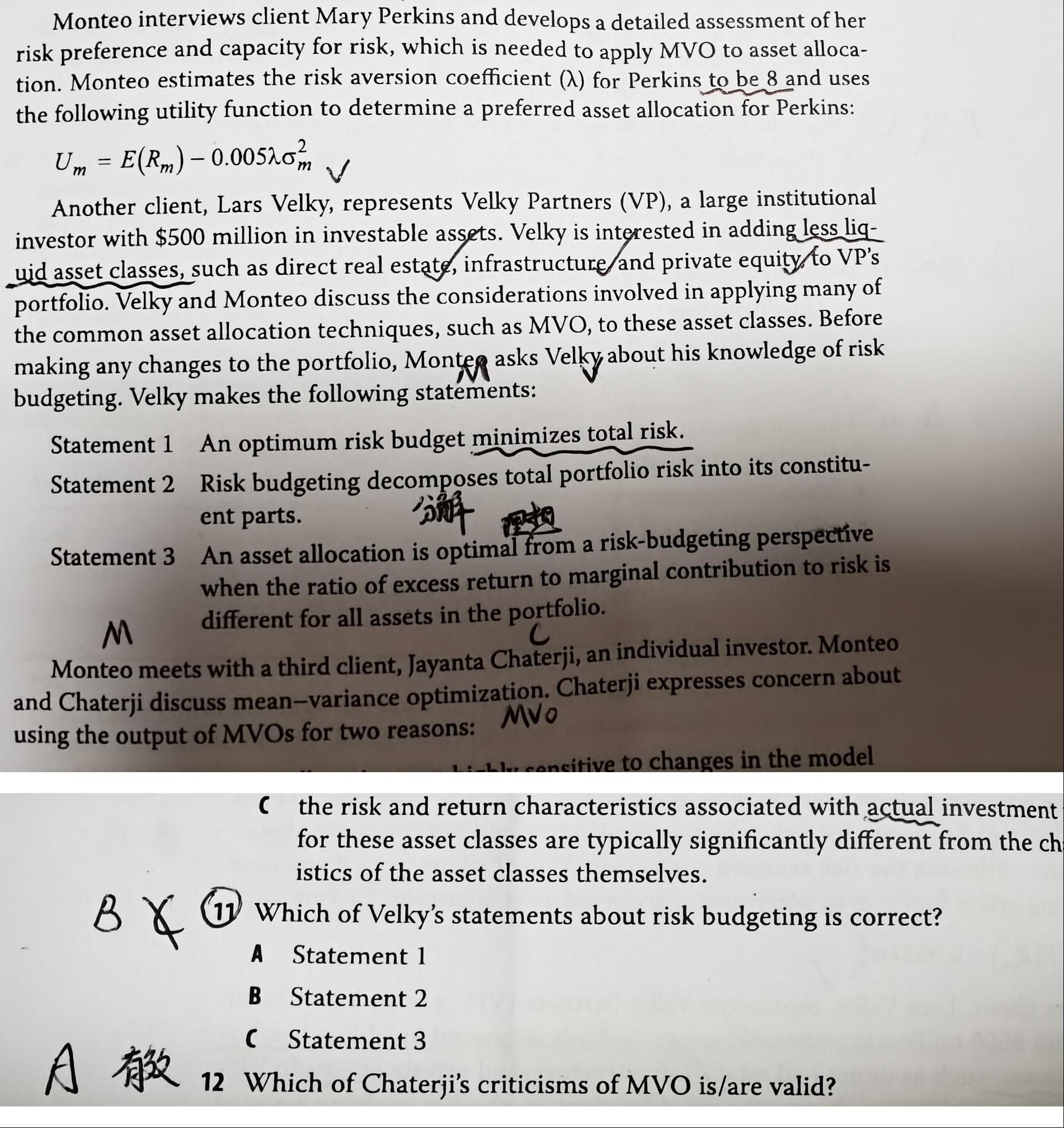 这题如何理解?风险预算的确是分解风险,使单位风险的超额收益最大