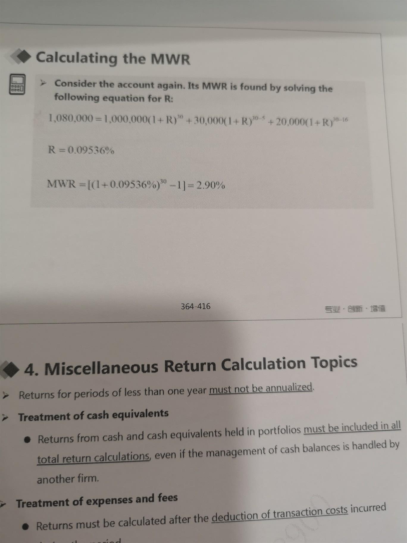 money weighted 不是at least annually 吗?为什么计算的是月收益率,不是年收益率