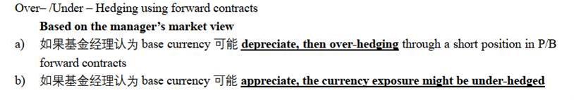 之前上基础课时候的笔记,这里有些看不懂想问问老师:base currency 可能 depreciate, then over-hedging through a short position in P/B forward contracts 。我理解base currency如果贬值的话,是需要short P/B的,但是为什么short P/B就是over hedging?