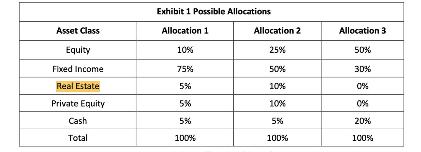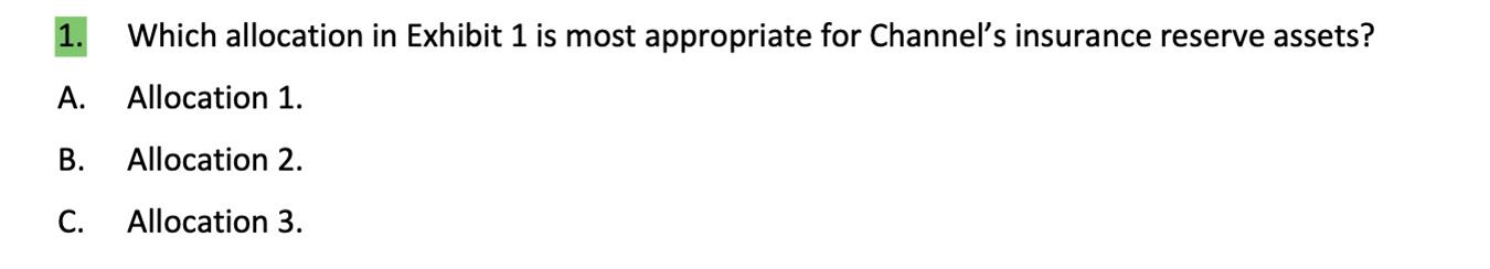 已回答百题 Case3 Q1 为什么不选allocation2?这里只说是real estate没说是private real estate,答案武断地把它分进private是不对的。其次,他作为有surplus的投资组合,可以追求更高收益,allocation2比1更好。