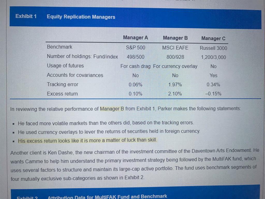 想问一下为什么说managerB的excess return is more a matter of luck than skill? 该题来自cfa官网的practice“Arthur Camme Case Scenario”这个case