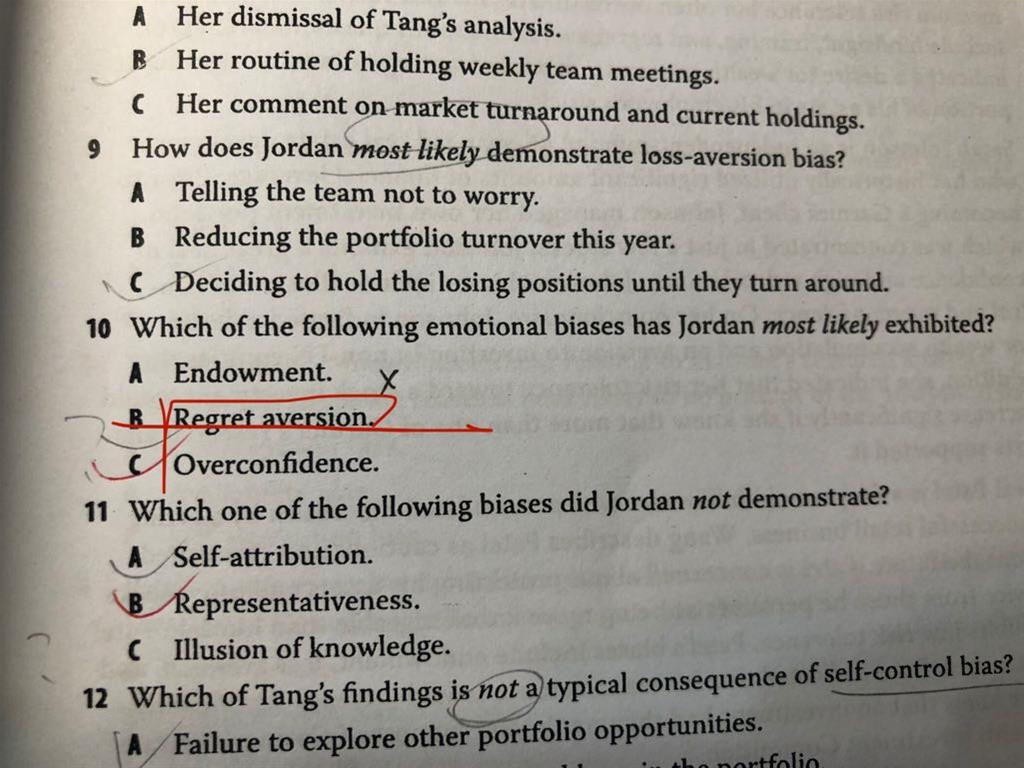老师您好,我觉得文中这段话就是在说regret aversion, 为什么不选regret aversion呢?谢谢