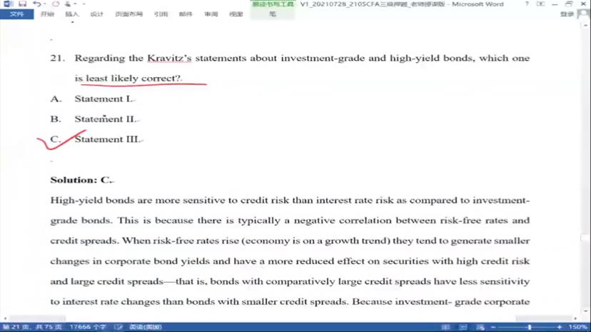 已回答老师好,押题Q21statement II investment grade通常用spread duration来衡量为什么是对的?spread duration通常代表的不是credit risk吗?investment grade更关注利率风险所以我当时觉得用spread duration来衡量是错的。