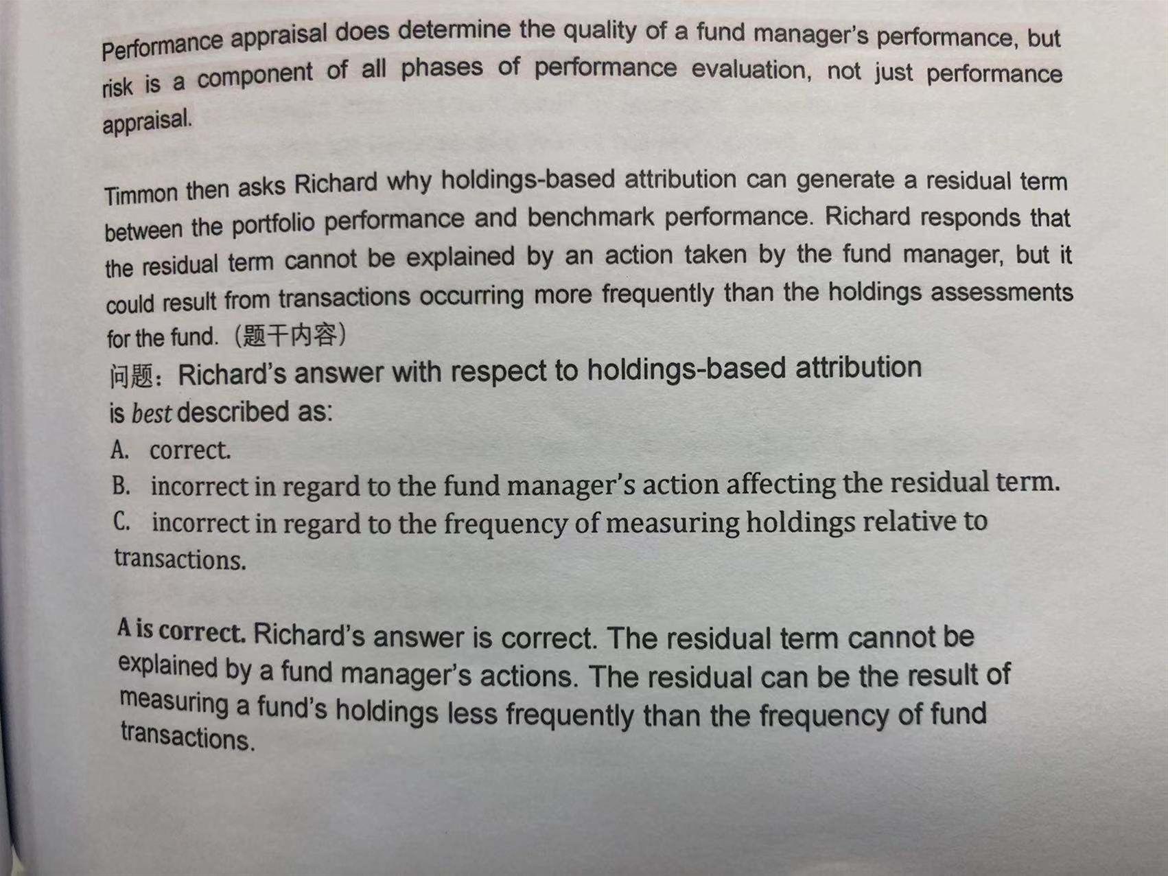 包含CFA三级传统在线课程相关提问答疑;
