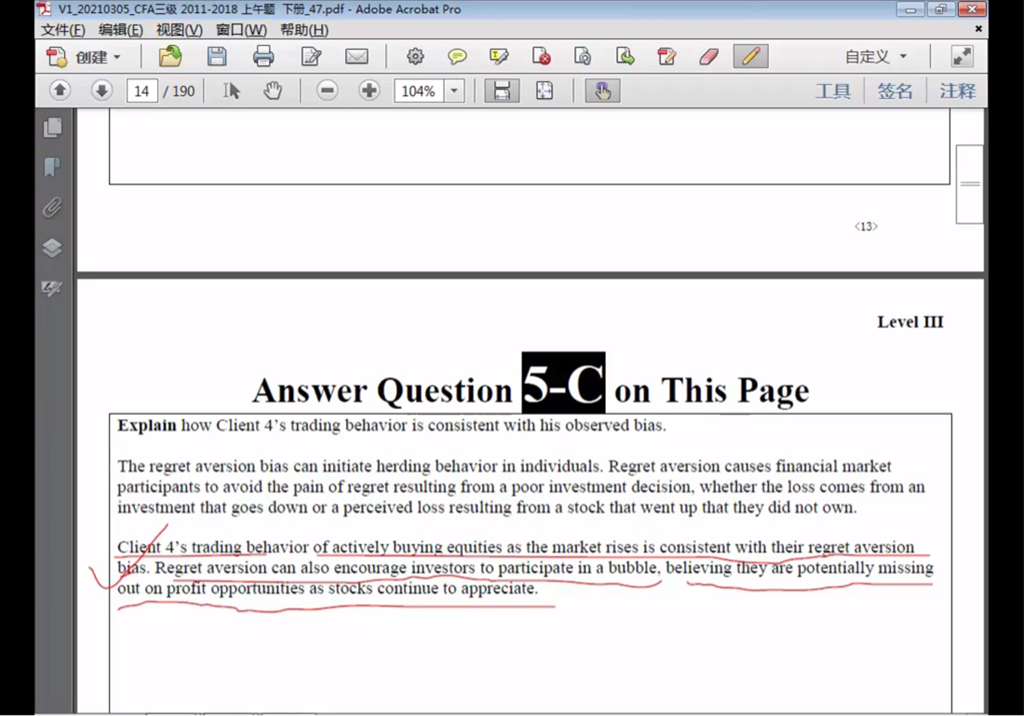 老师这里讲的和Jcy老师讲的不一样,Bob讲的是怕后悔因此不行动,而Jcy讲的是现在CFA协会倾向于怕后悔因此要行动,所以现在究竟偏向哪一种。。。