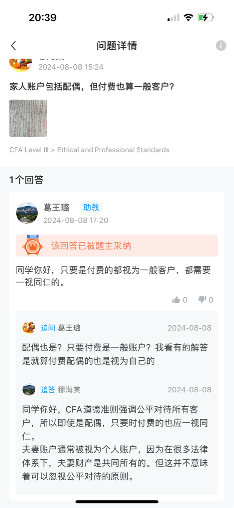 包含CFA三级传统在线课程相关提问答疑;