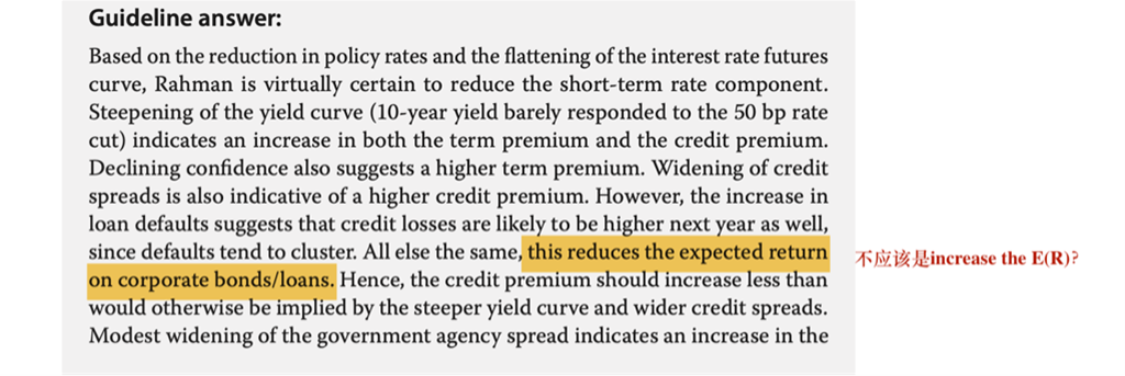原版书P239 Example2 这里的guideline answer里有一句我不懂(标黄),所有这些不利的条件不应该导致expected return 上升吗?(confidence降低,default上升,credit spread widening,经济变差?)
