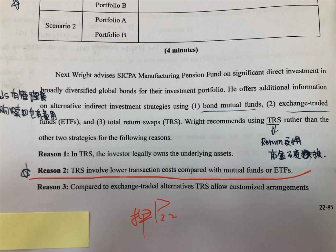 老师您好, 我觉得reason2 不对,我是这样写的Reason 2 is incorrect, because the counterparty of TRS is dealers, who earn bid-ask spread, the transaction costs should be higher than mutual fund or ETFs. Investors directly trade with sponsors when they purchase or redeem mutual funds. Exchange-traded funds are trade at Exchange, so they have higher liquidity and lower transaction cost. , 你能帮我看看我哪里错了, reason2 为什么对。 谢谢