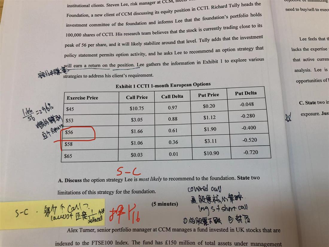 老师您好, 我知道这道题是用covered call, S-C, 我在想我short call的份数是跟stock的份数(100,000份)一样吗?还是short 100,000/(delta call)份call呢?谢谢