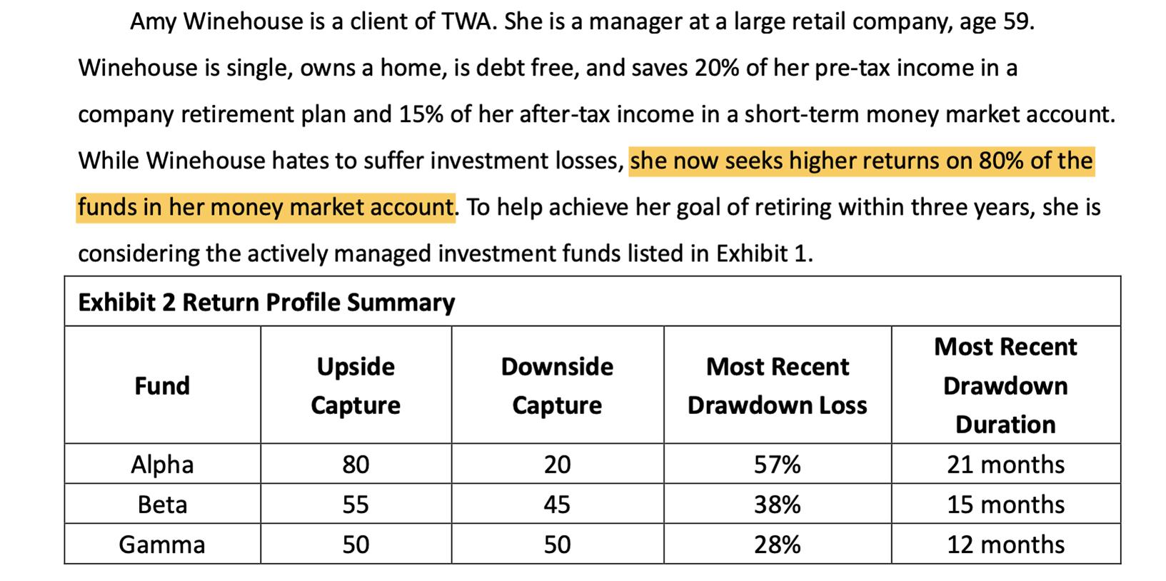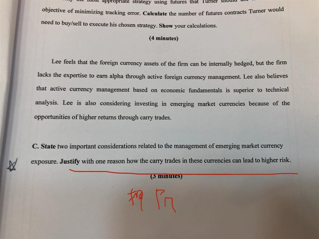 这里为什么选gamma,虽然答案说的也有道理,出于risk的考虑选择。但是原文有一点没有顾及到,就是她seeks higher return,gamma的capture ratio=1,根本没法做到higher return呀。我是均衡下来觉得beta risk不大,capture大于1,从risk和return两个方面考虑,选beta。