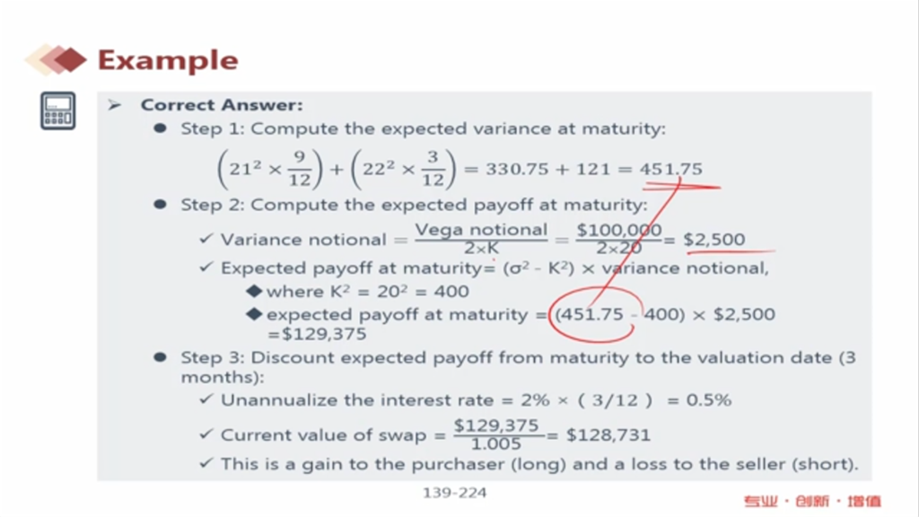 为什么这里option到期日的expected variance是用过去9个月的variance和未来3个月的option的加权来算,而不能直接用未来3个月的option?我的理解是期初用一年的option就是代表预期一年后的variance是这个一年期option的值。那么站在第9个月的时间点上,3个月的option便代表了最新的对第十二个月末的variance的预期,直接使用即可。题目答案用加权来算,是一个惯例嘛?求背后的逻辑解释