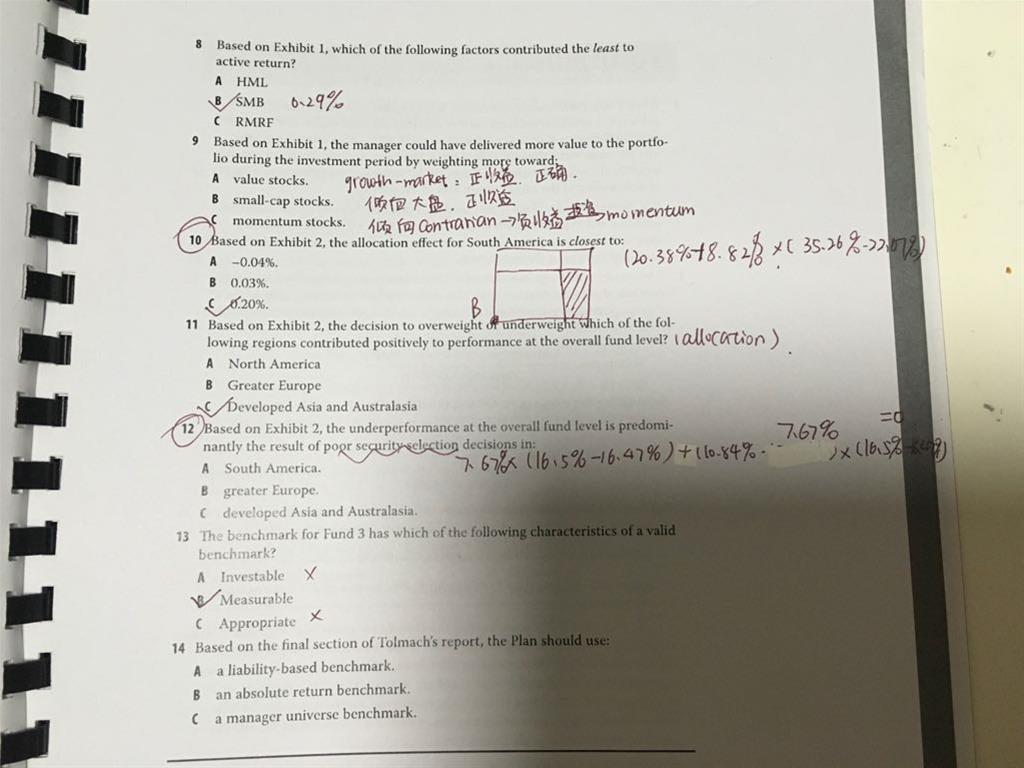 老师好: 两个问题1)如何判断基准点是0还是benchmark?2)为什么第12题计算selection的时候要考虑intersection部分,而第10题allocation的时候就不需要考虑intersection了呢?