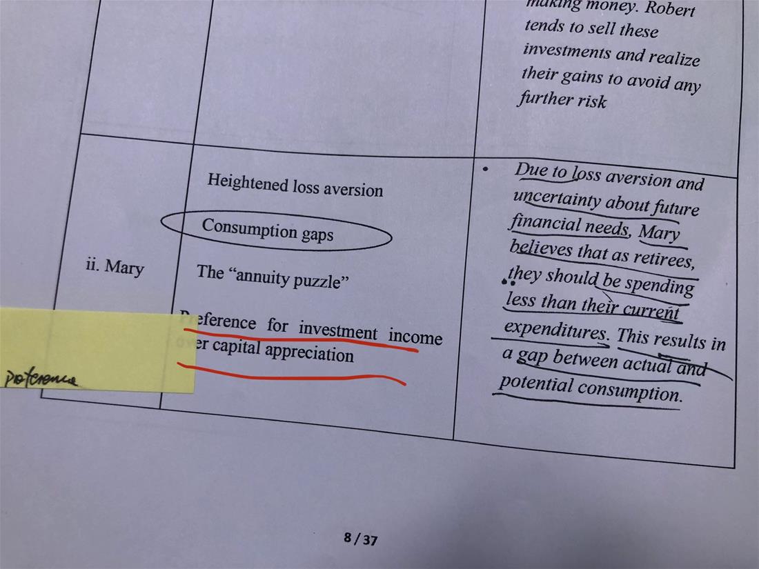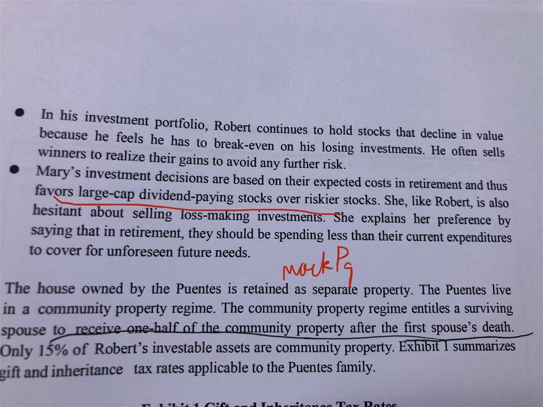 已回答老师您好,我想问一下这里为什么不选preference for investment income over capital appreciation呢? Mary favor large-cap dividend-paying stocks over riskier stocks, 所以我觉得她喜欢investment income over capital appreciation. 谢谢