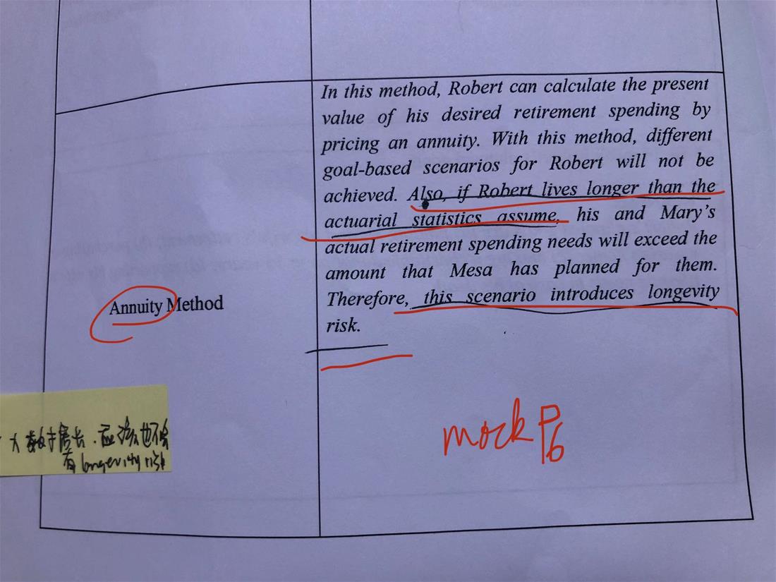 老师您好,这道题的答案说的是如果活得比平均年龄长,就会有longevity risk, 但是这个不是annuity method的吗? 每年pay fixed amount 直至死亡, 为什么会有longevity risk呢?谢谢