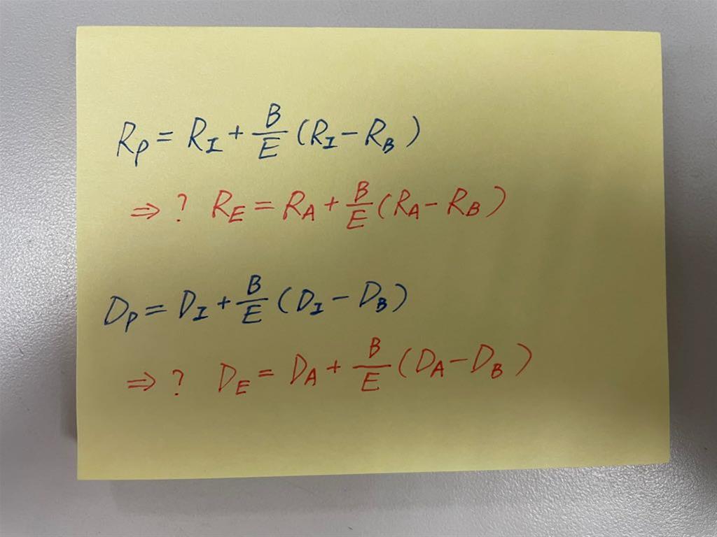 已解决请问固定收益部分,加入杠杆后的收益率Rp和久期Dp的公式是否可以理解为加入杠杆后权益的收益率Re和权益的久期De?我看很多题目(例如百题case3的第一题)都是给了个资产负债表,让计算加入杠杆后equity的久期或者收益率。不知道我这么修改两个公式(见附图)有没有问题?