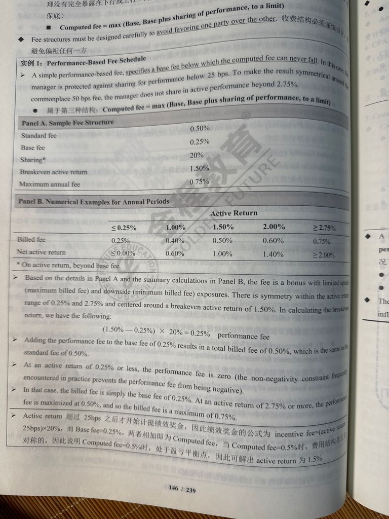 这个里面要求求盈亏平衡点的active return,还解释了所谓的费率结构左右对称,处于盈亏平衡点,看上去是base fee等于incentive fee时候的active return。