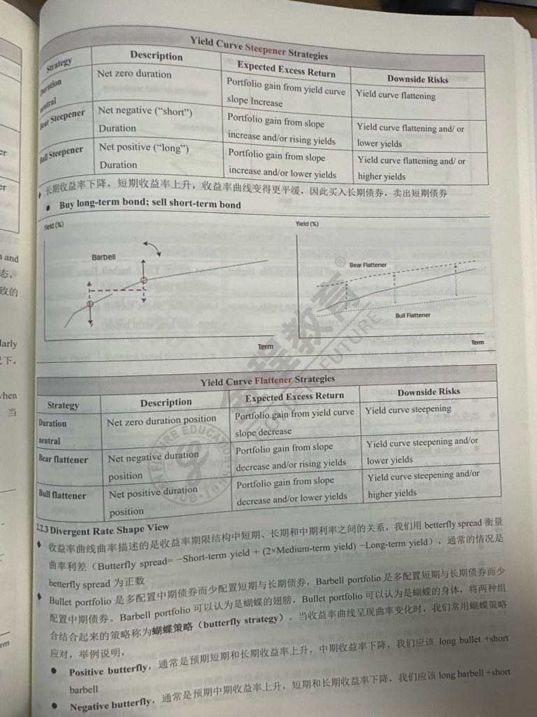 这页最后三段话能否详细说明下?平坦曲线为什么借入长端,届出短端?另外收支利率不是调整久期吗?还有国债期货这个多空不也是吗?怎么理解这里?