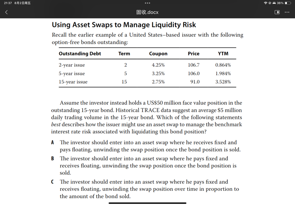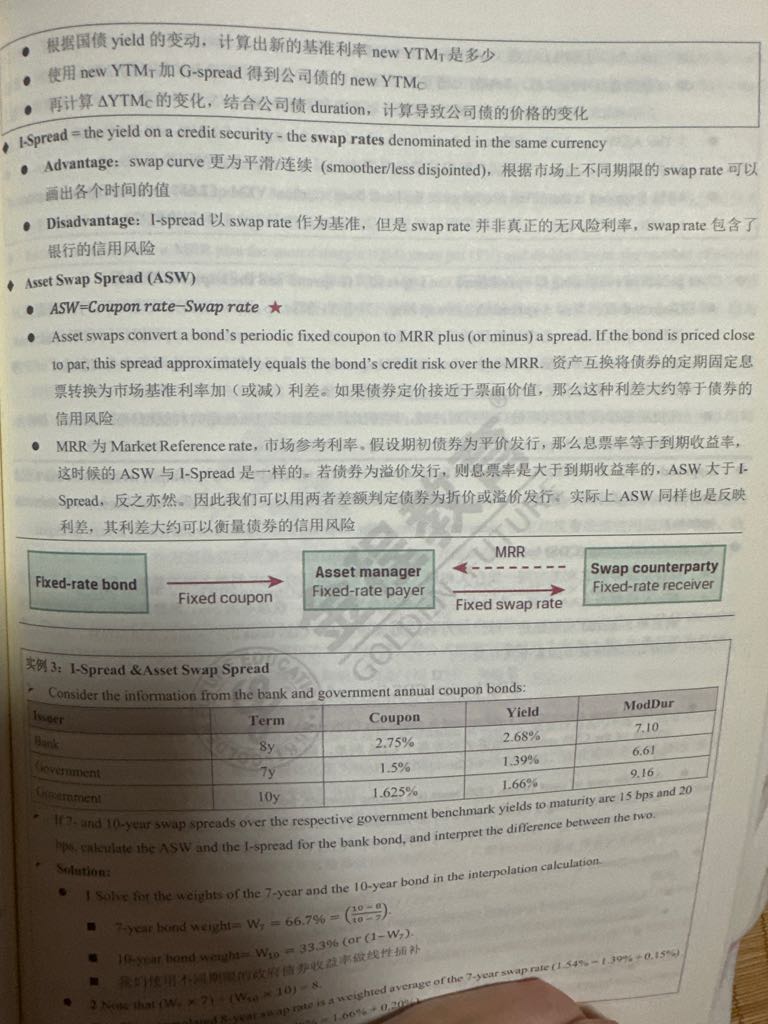 资产互换将债券的定期固定息票转换为市场基准+-利差说法有问题吧,是swap rate+asw这个利差